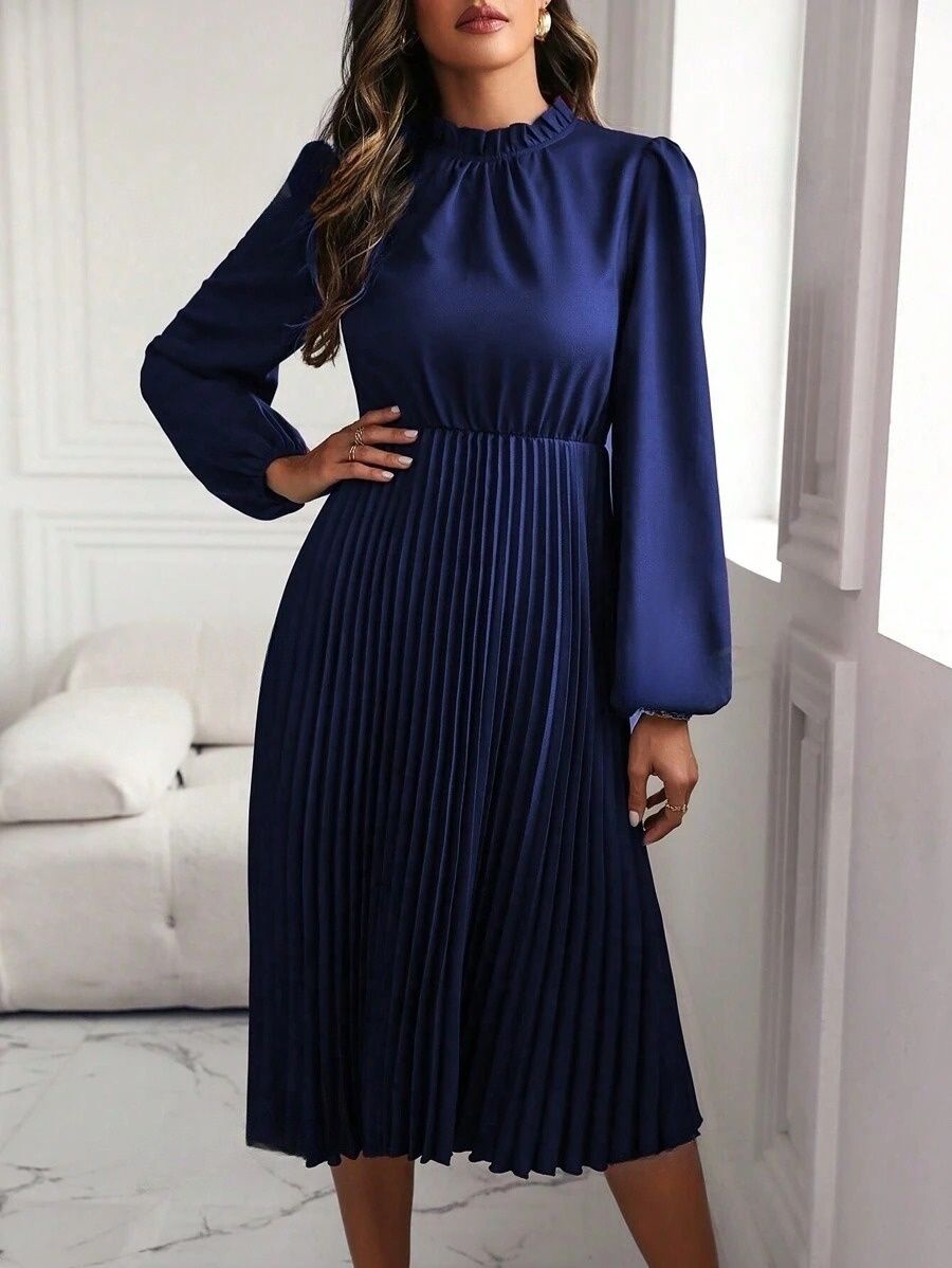 Rochie Midi Bombasi Bleumarin cu Pliuri