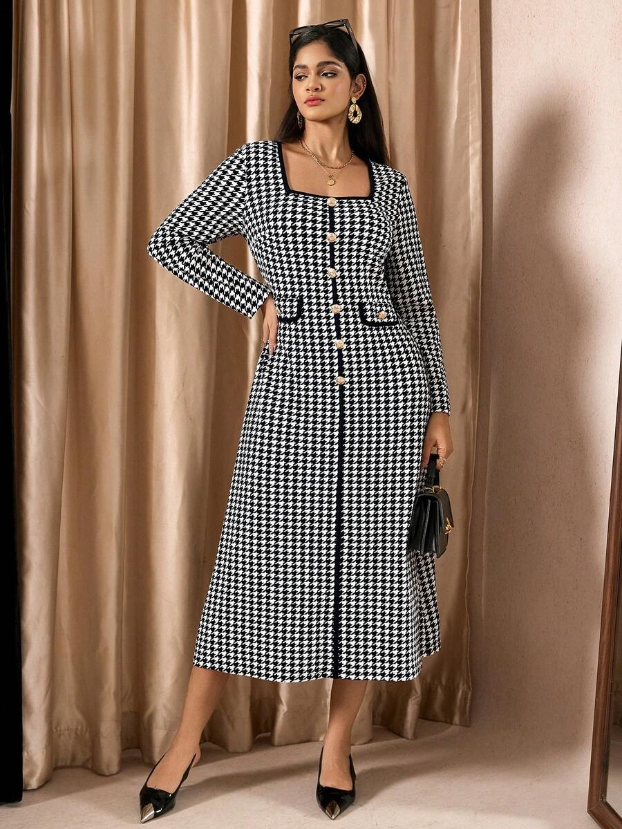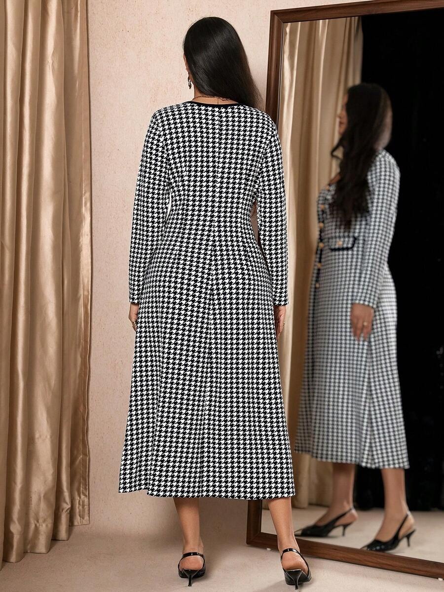 Rochie Midi Dilara Alba cu Print Geometric Negru – Marimi Mari