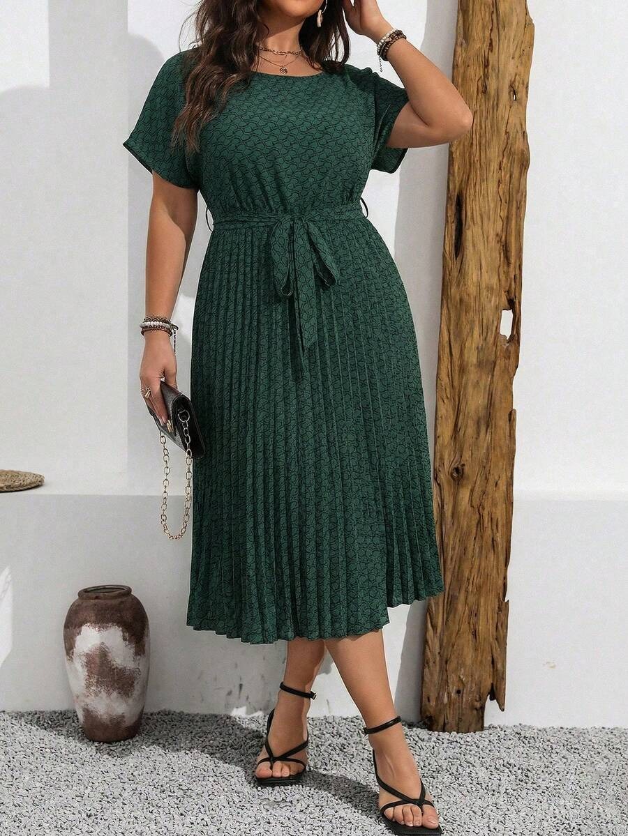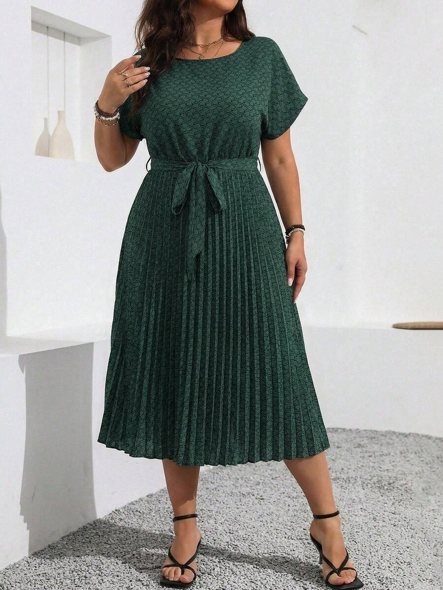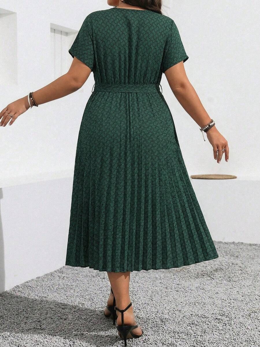 Rochie Midi Dinna Verde cu Print Geometric Negru – Marimi Mari