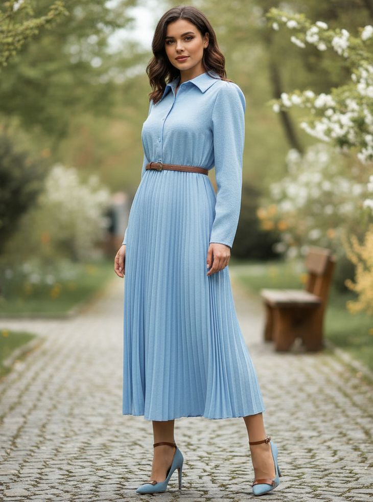Rochie Midi Doris Bleu Plisata