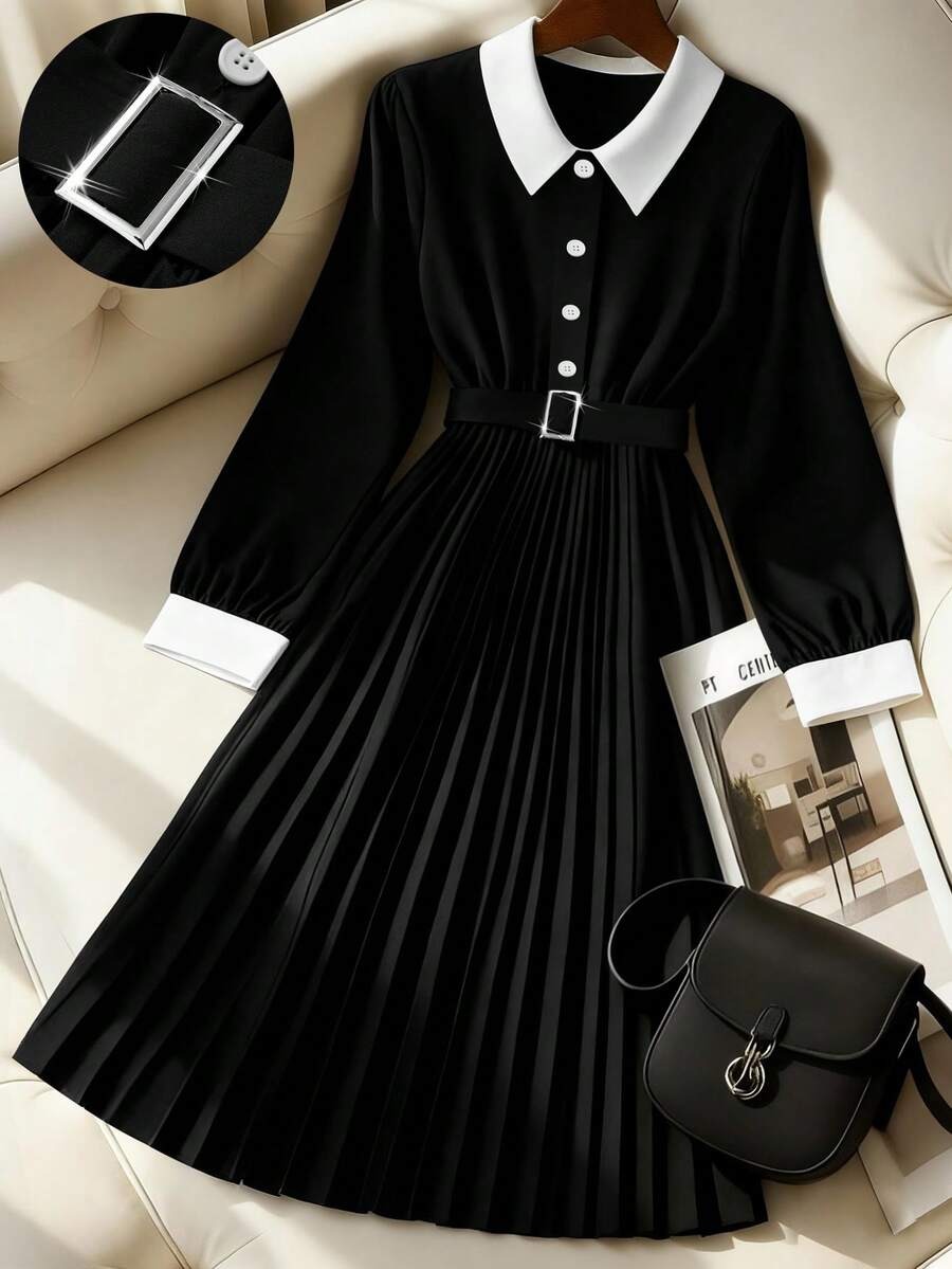 Rochie Midi Eberta Neagra Plisata – Marimi Mari