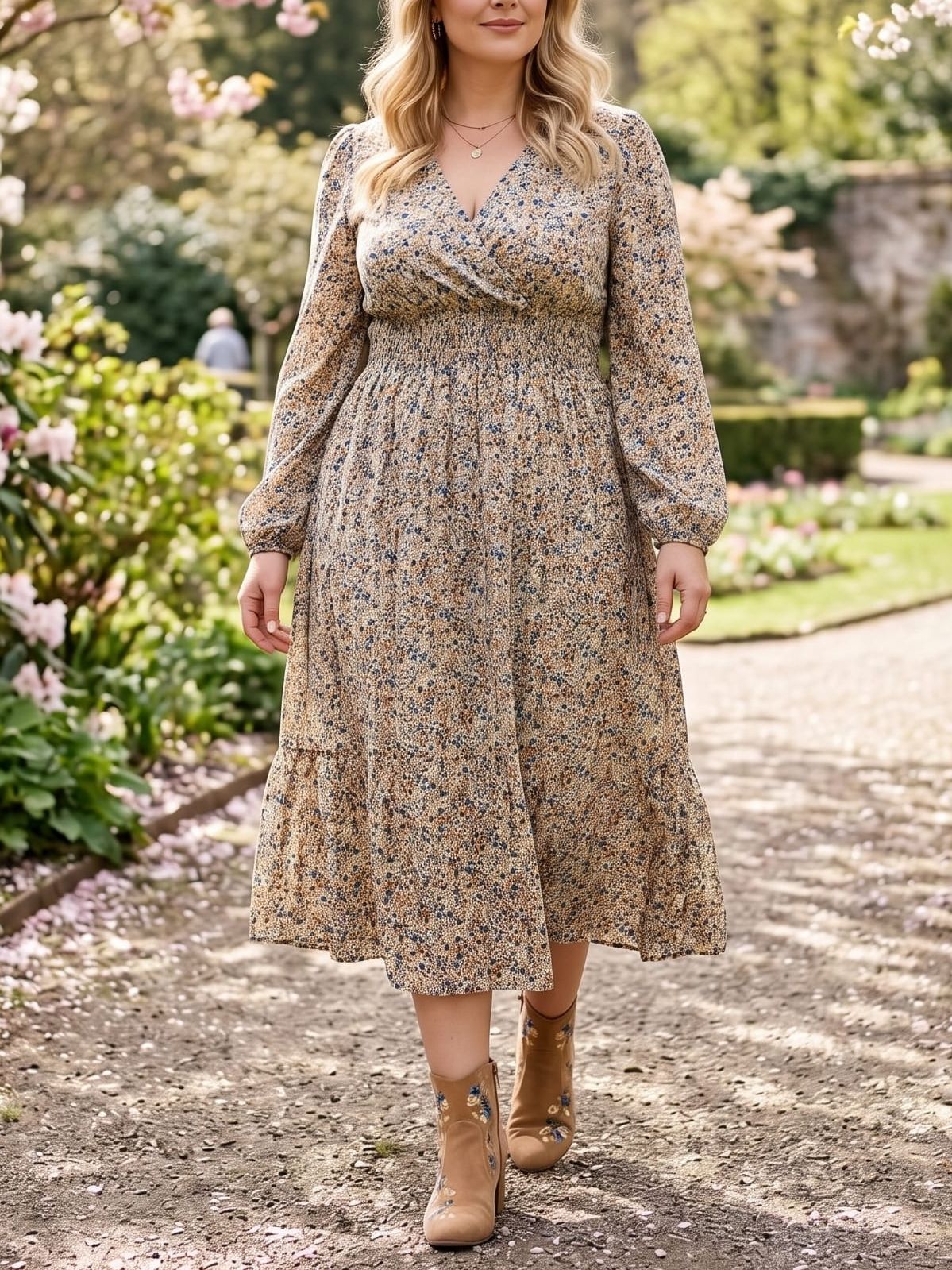 Rochie Midi Inna Crem Inflorata – Marimi Mari