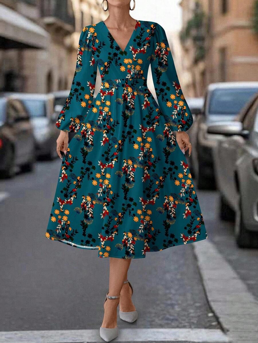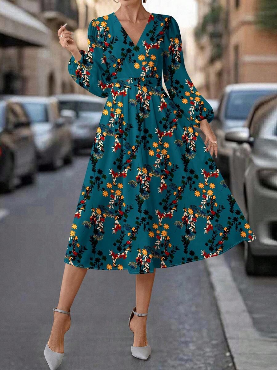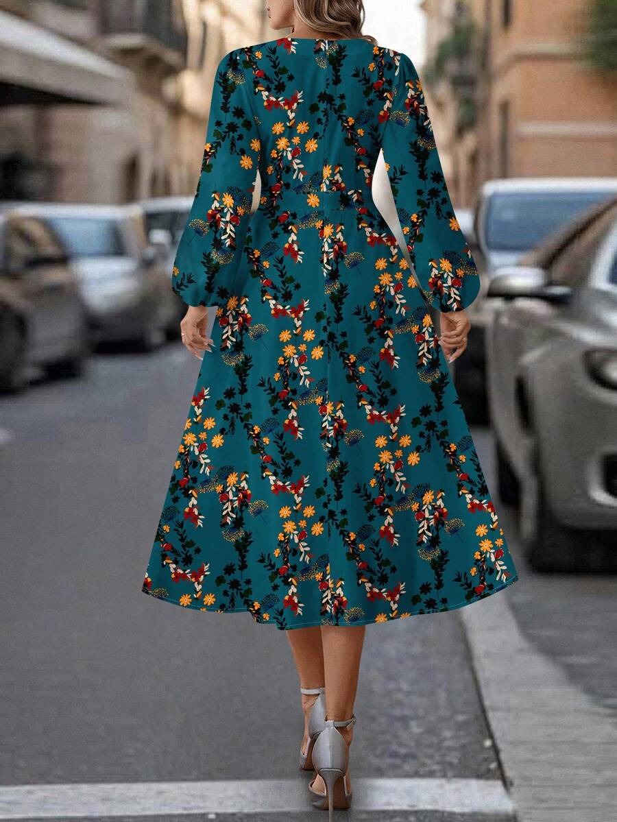 Rochie Midi Iuliana Albastra Inflorata