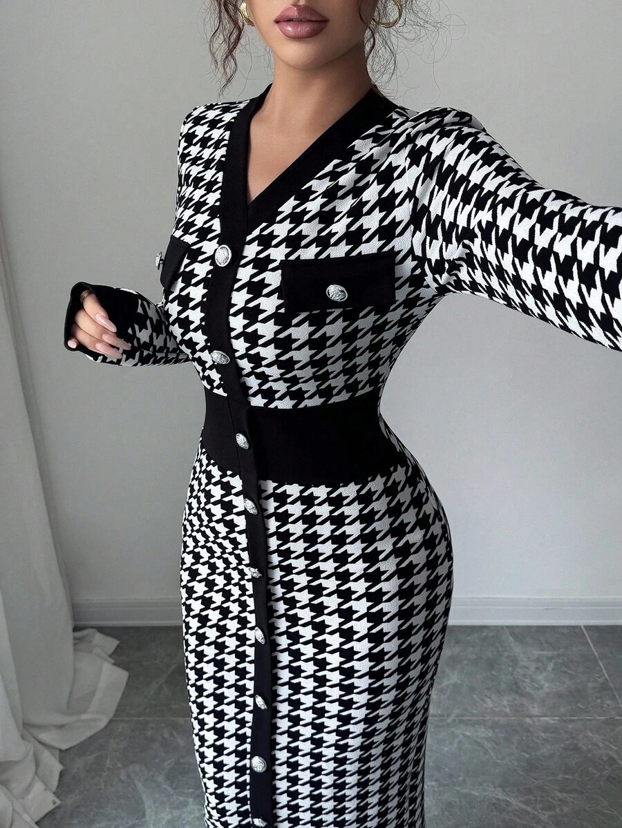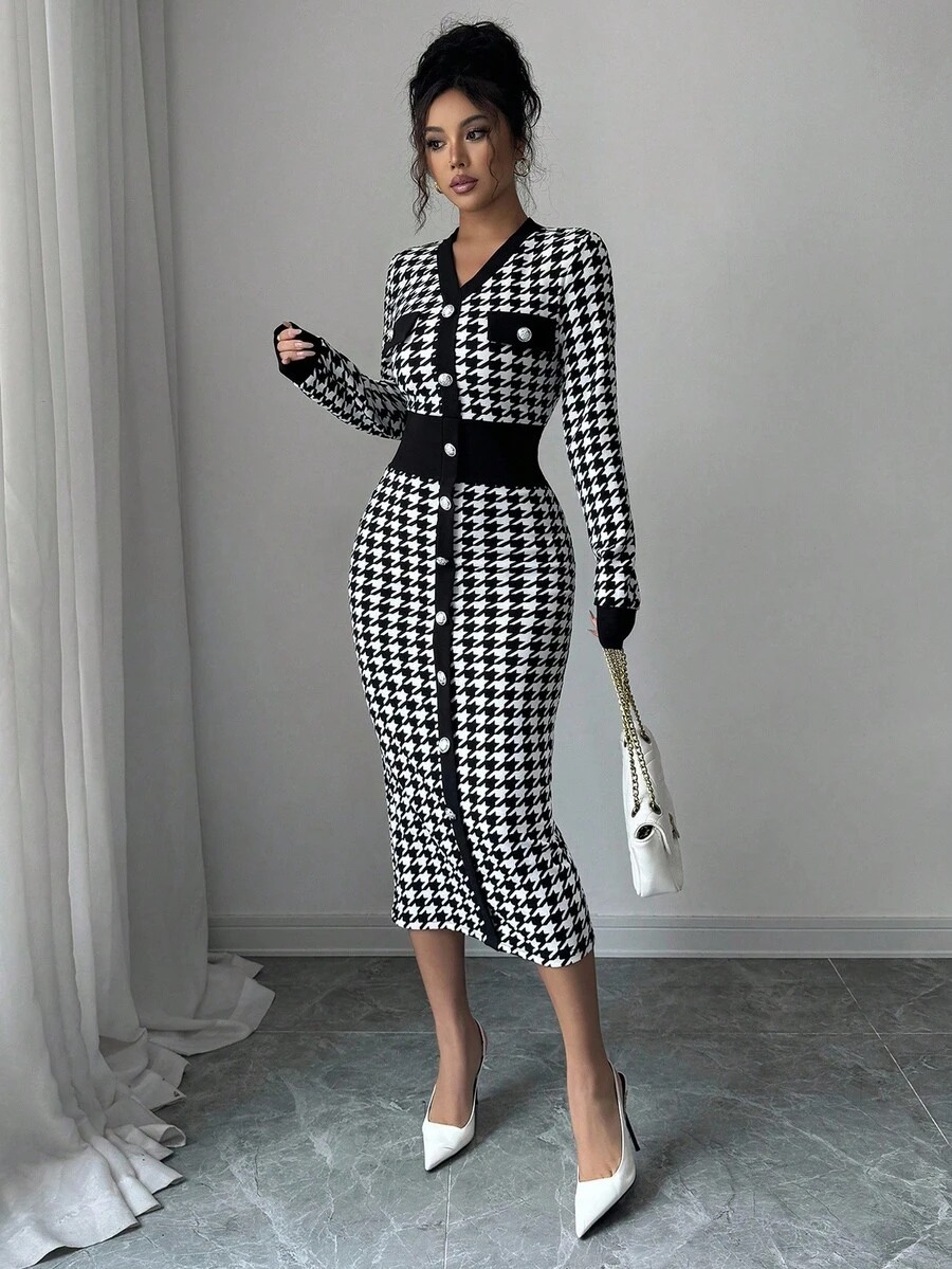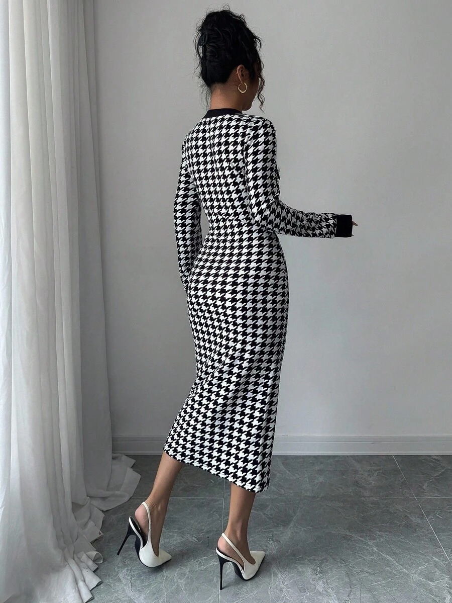 Rochie Midi Jenna Alba cu Print Geometric Negru