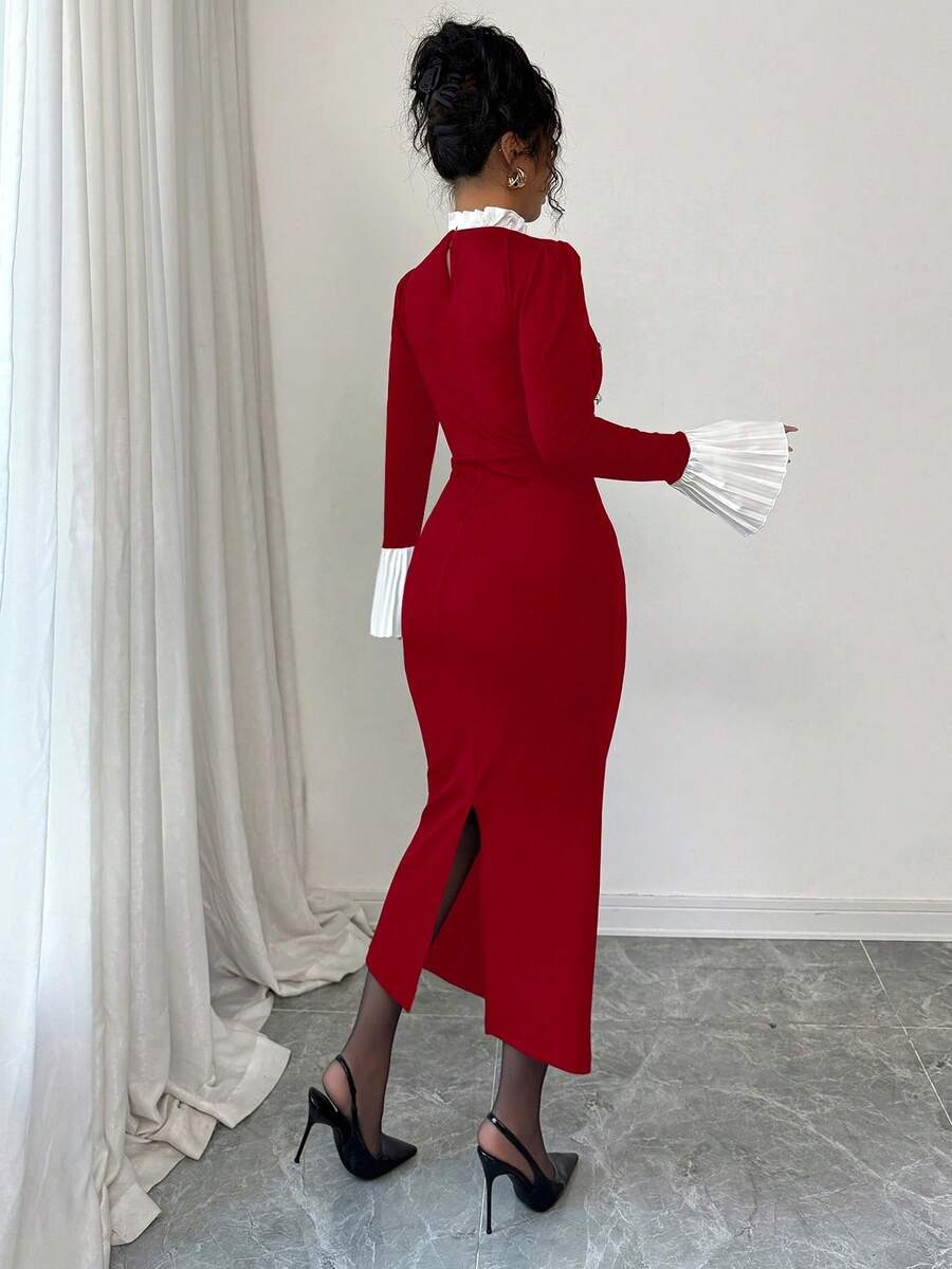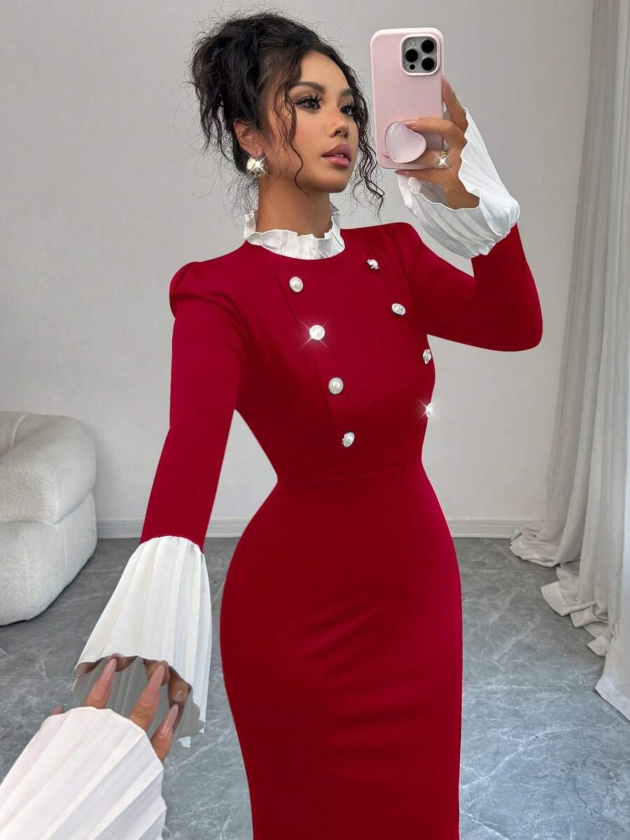 Rochie Midi Kamila Rosie cu Mansete Albe