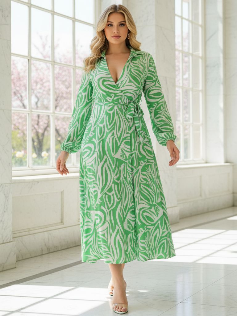 Rochie Midi Katerina Alba cu Print Vernil