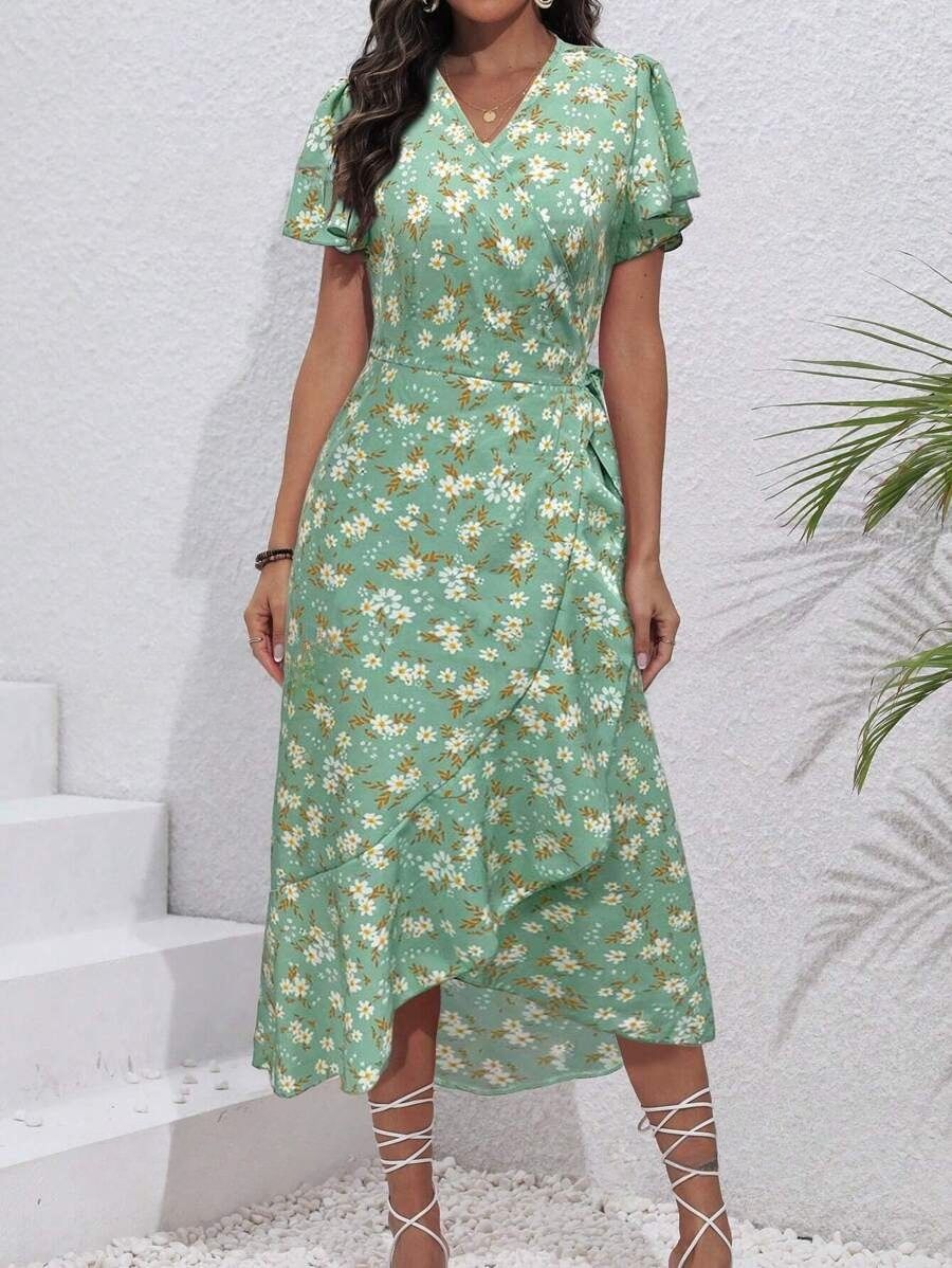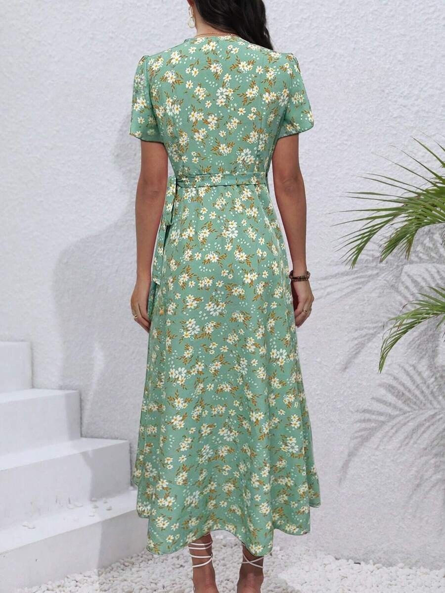 Rochie Midi Kriste Verde Inflorata