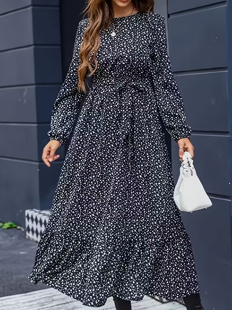 Rochie Midi Merlo Rosie cu buline Albe-Marimi Mari