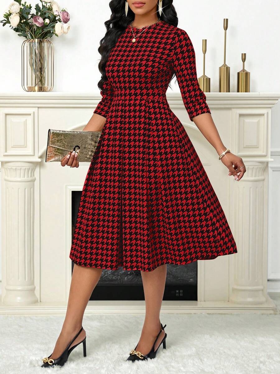 Rochie Midi Mioara Rosie cu Print Geometric Negru