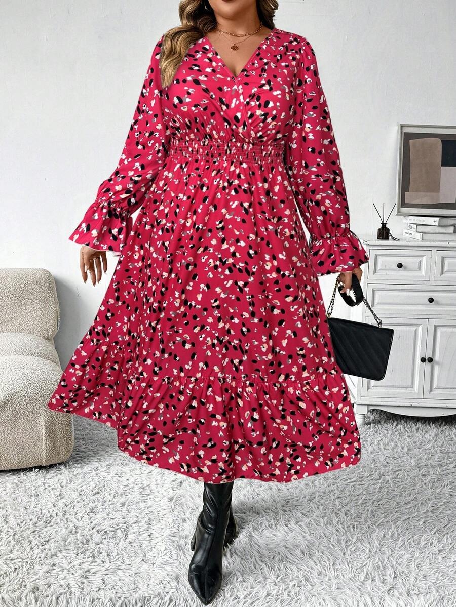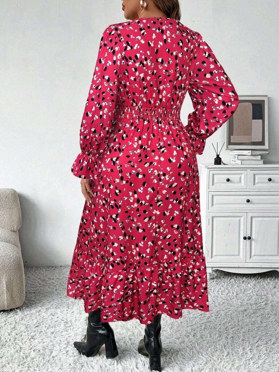 Rochie Midi Penelopa Roz cu Print Alb si Negru – Marimi Mari