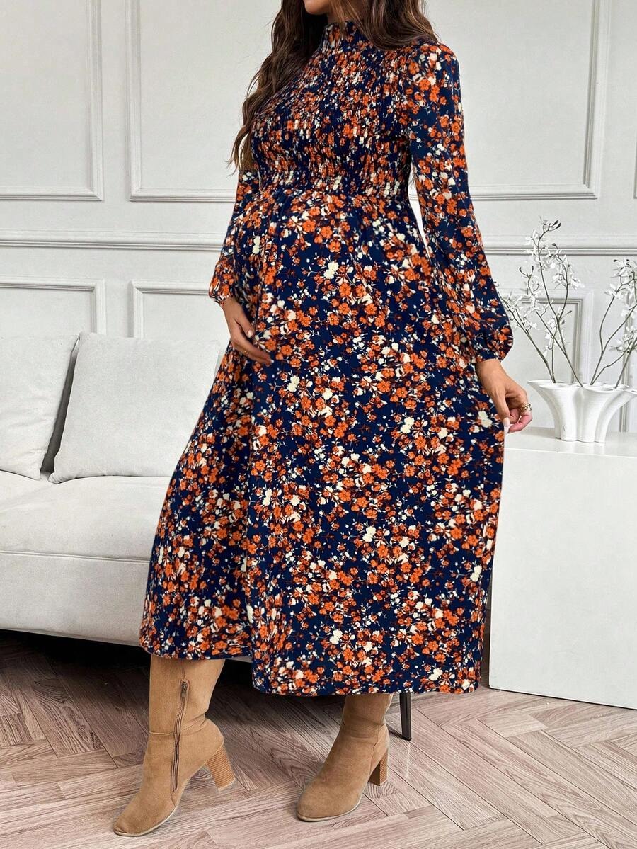 Rochie Midi Rahela de Maternitate Bleumarin Inflorata