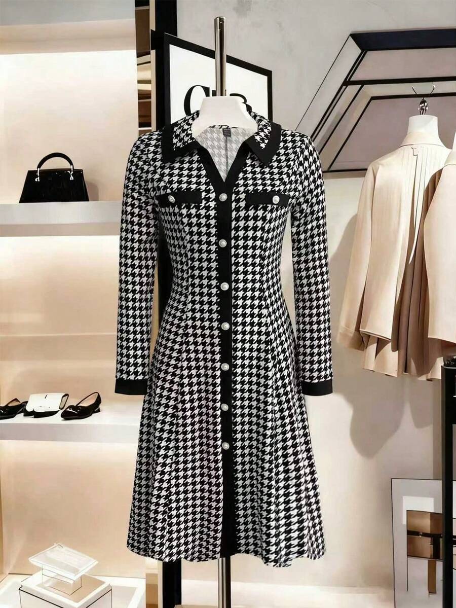 Rochie Midi Sabrina Alba cu Print Geometric Negru