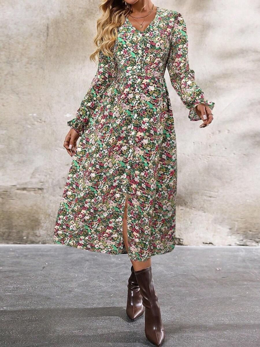 Rochie Midi Sanziana cu Print Floral Multicolor