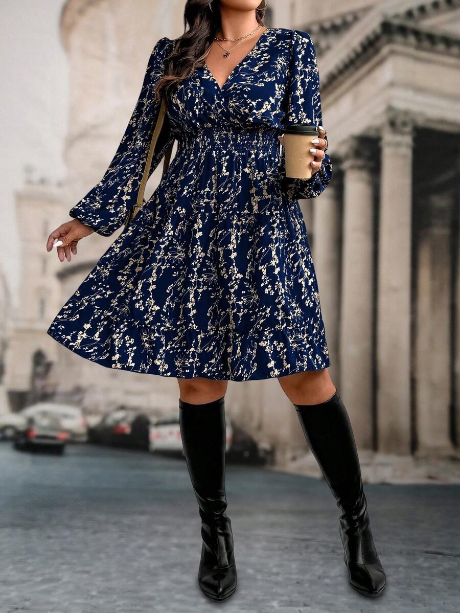 Rochie Scurta Adela Bleumarin Inflorata – Marimi Mari