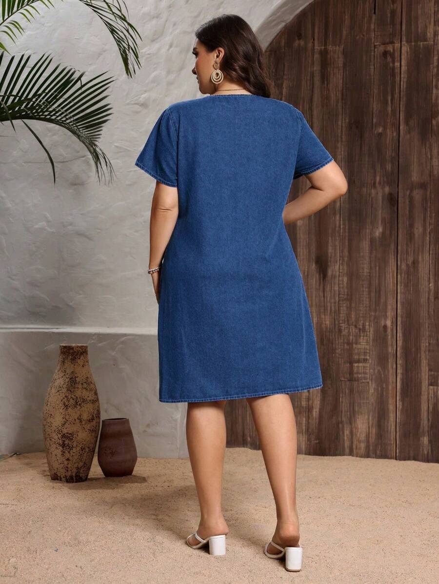 Rochie Scurta Alma din Denim – Marimi Mari