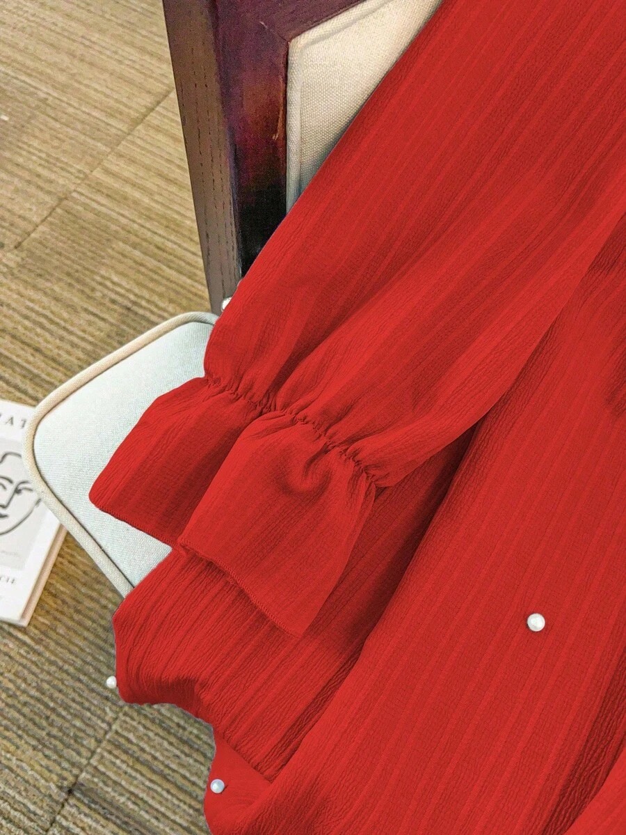 Rochie Scurta Arbesa Rosie cu Perle – Marimi Mari