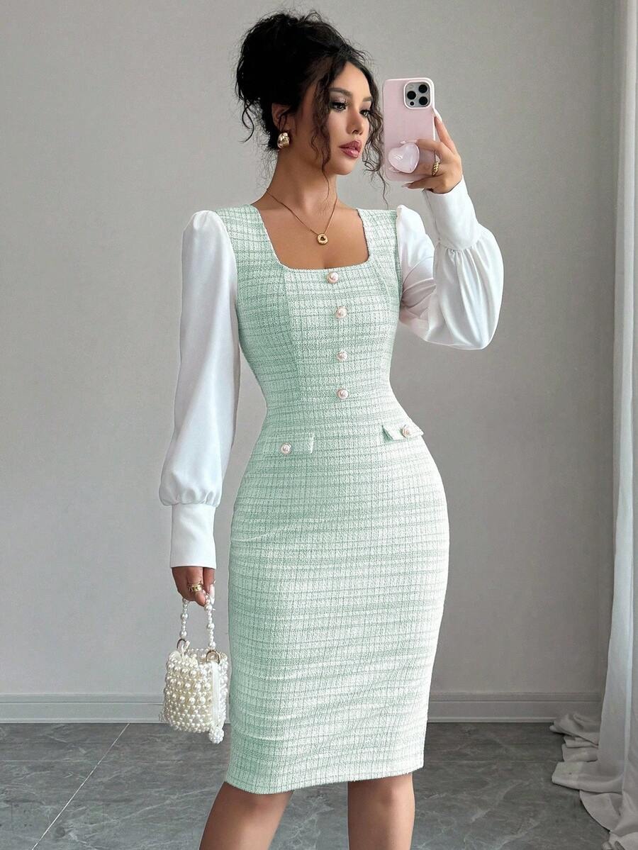 Rochie Scurta Bertha Vernil cu Maneci Albe