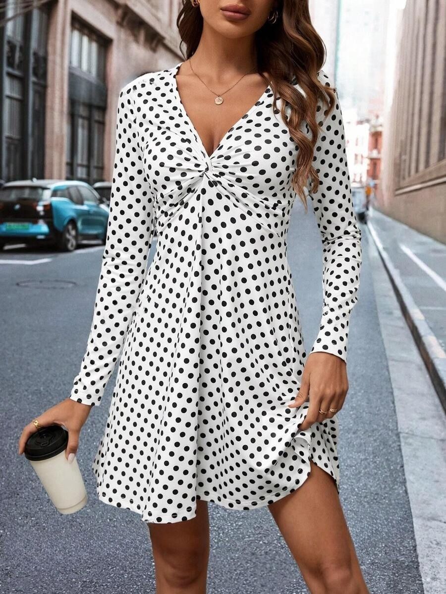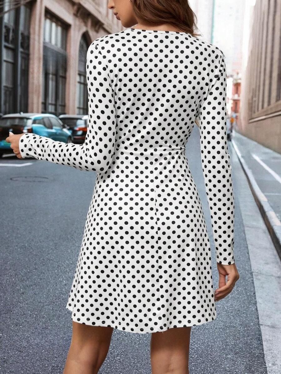 Rochie Scurta Carlie Alba Cu Buline Negre