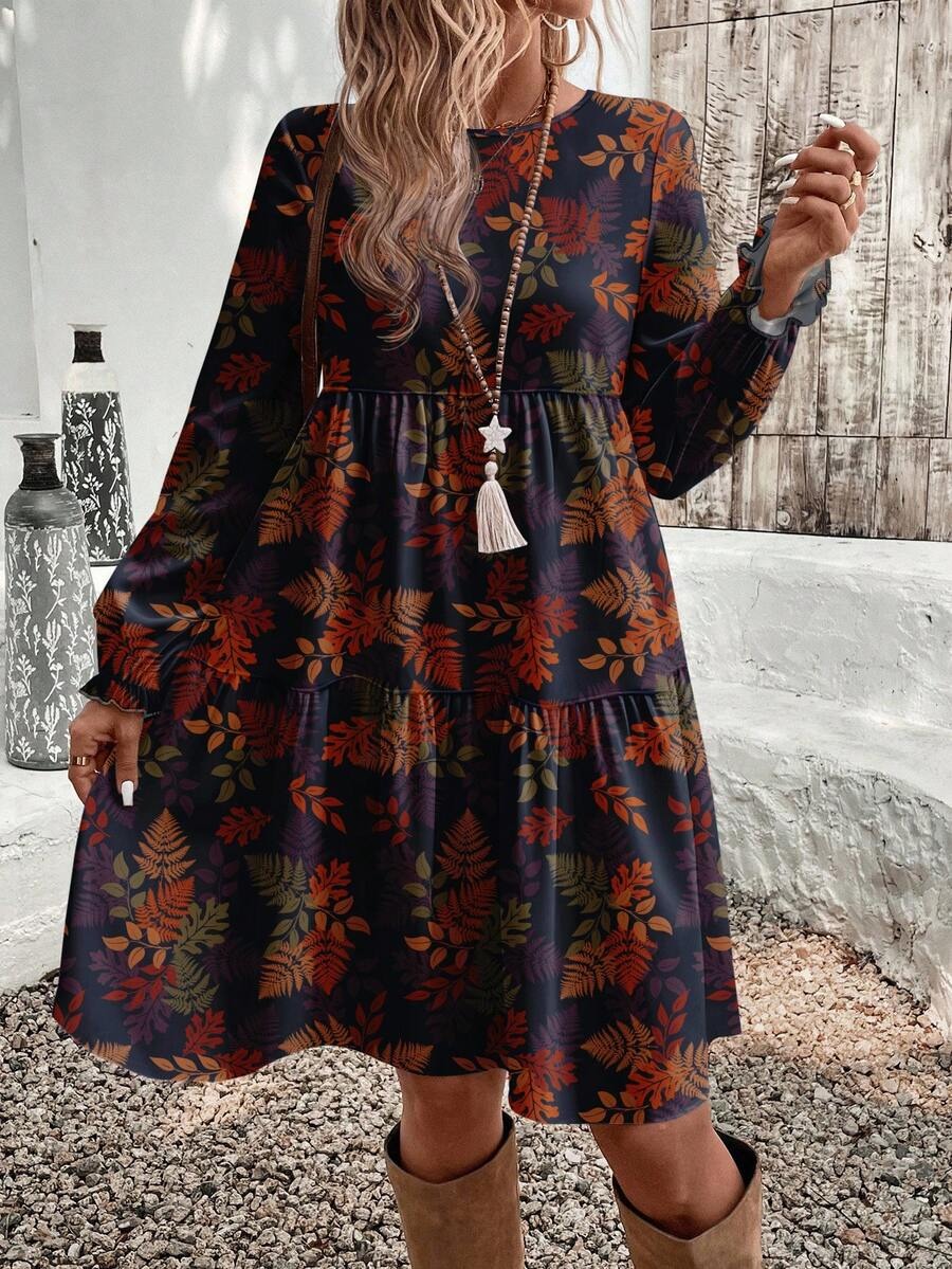 Rochie Scurta Dida Mov cu Frunze – Marimi Mari