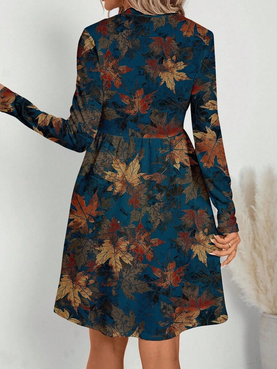 Rochie Scurta Didra Albastra cu Frunze