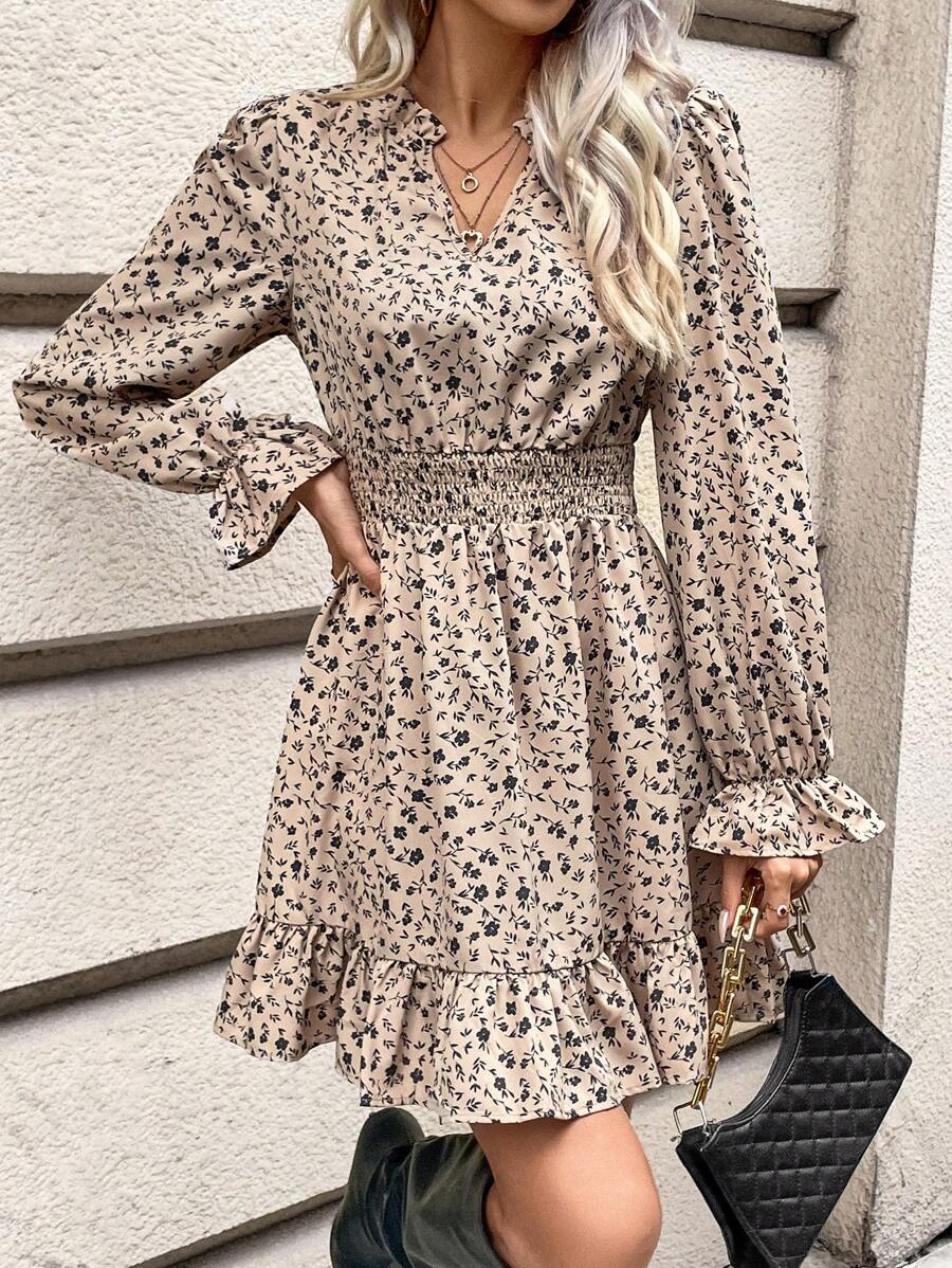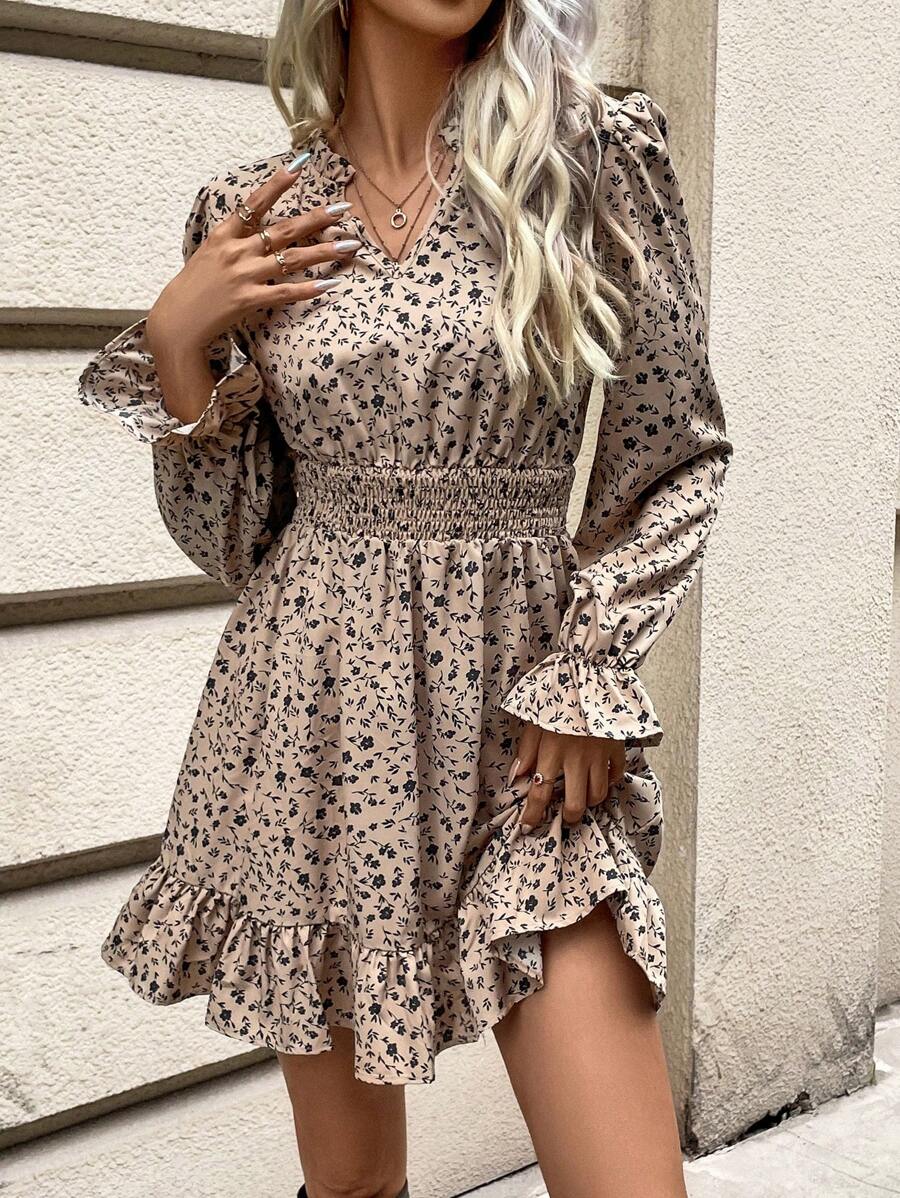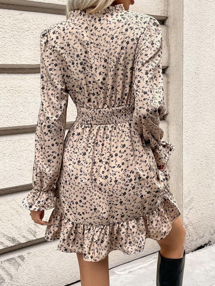 Rochie Scurta Dorina Crem Cu Model Floral Negru