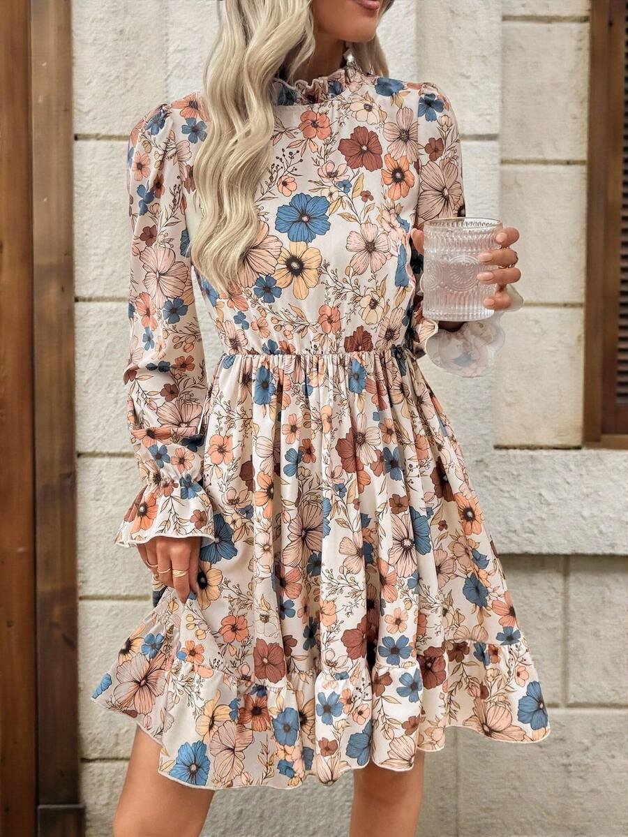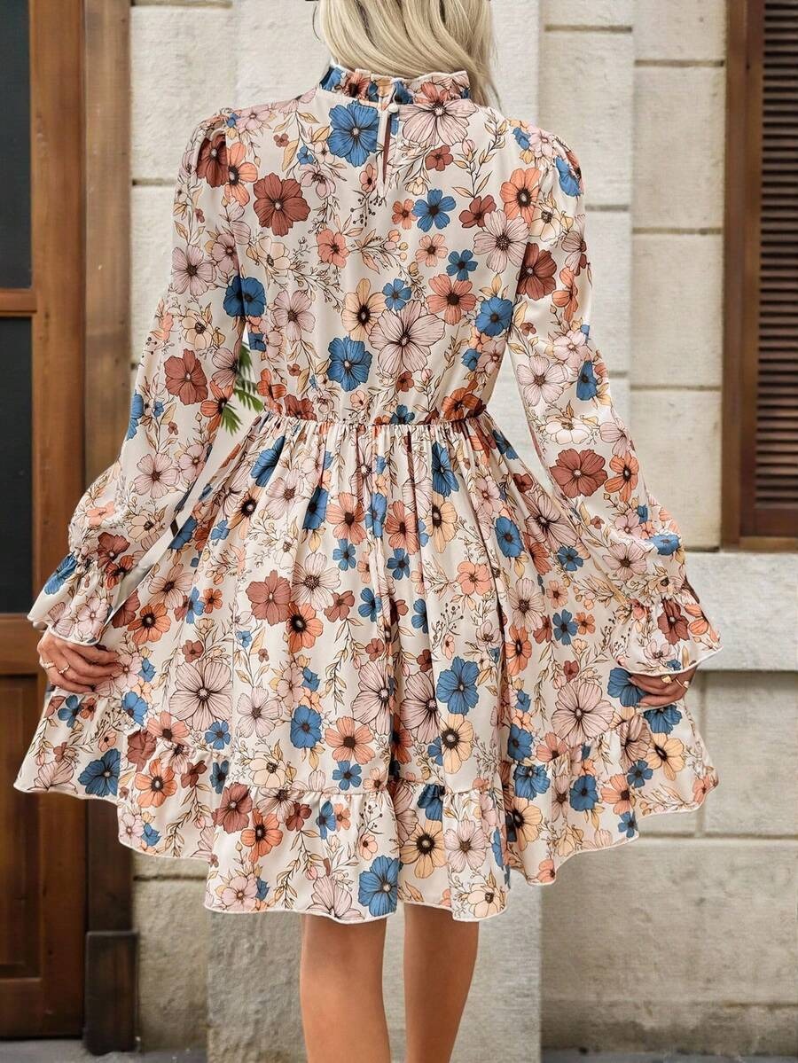 Rochie Scurta Dorra Crem Inflorata