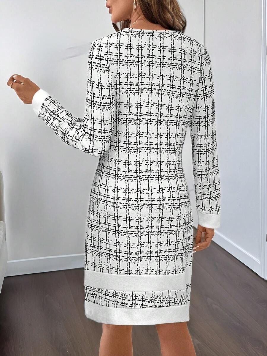 Rochie Scurta Ferrol Alba cu Print Geometric Negru