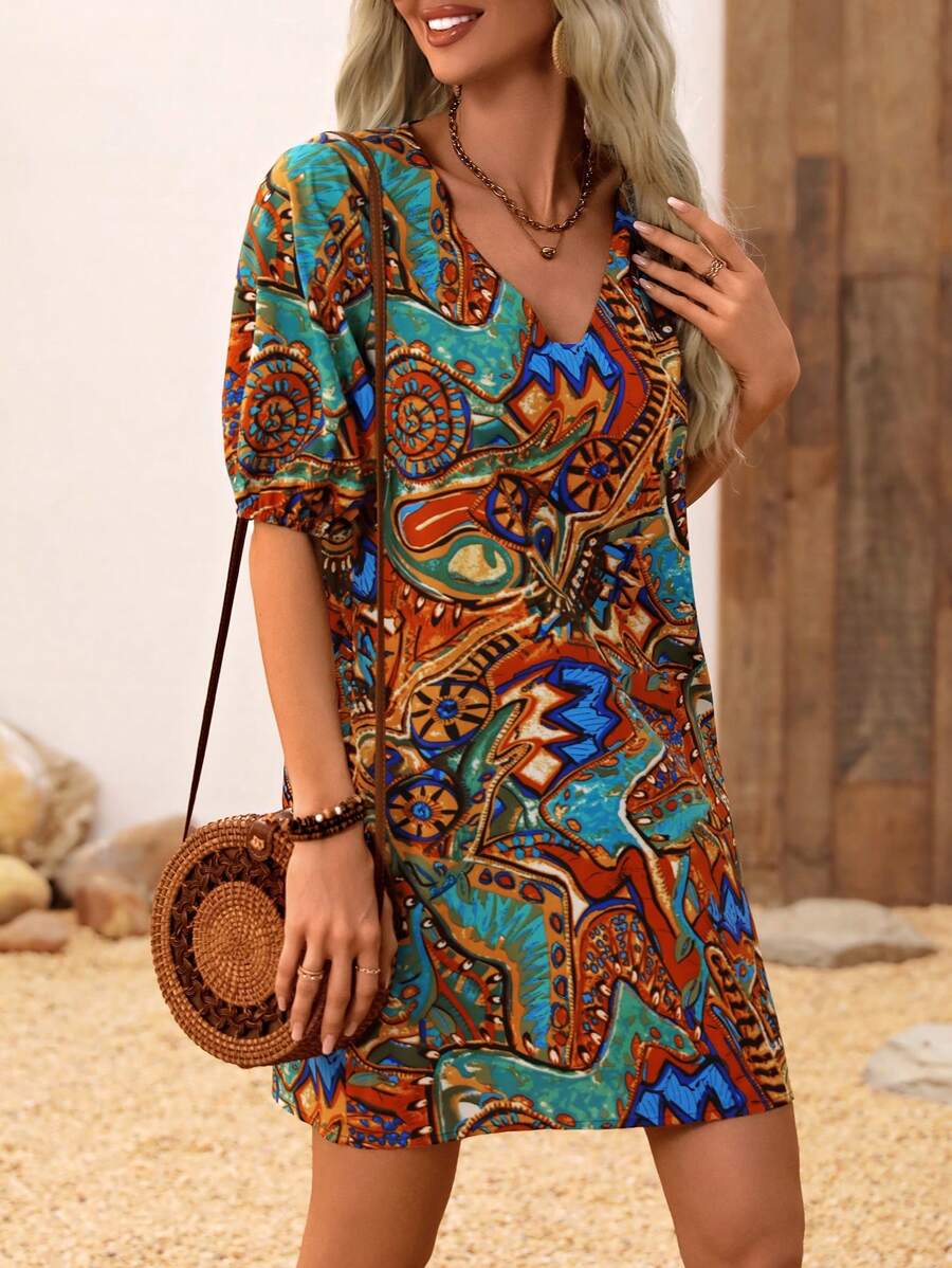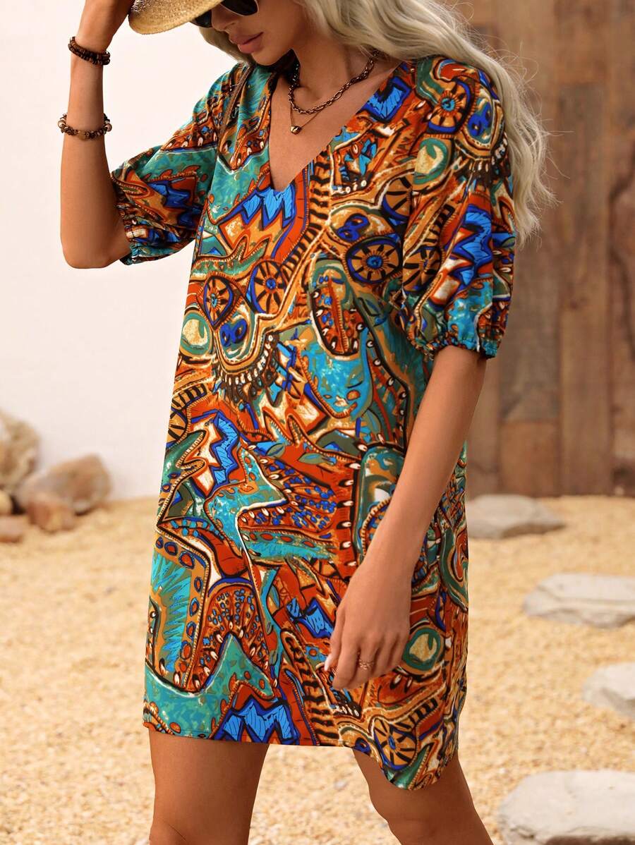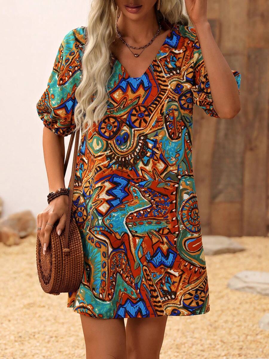 Rochie Scurta Helie Cu Imprimeu Geometric Multicolor