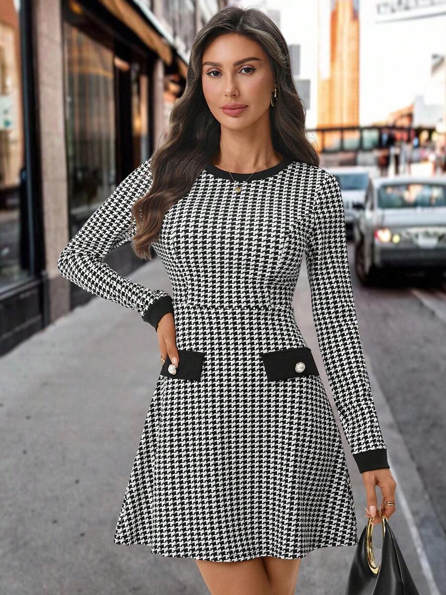 Rochie Scurta Henriete Alba cu Print Geometric Negru