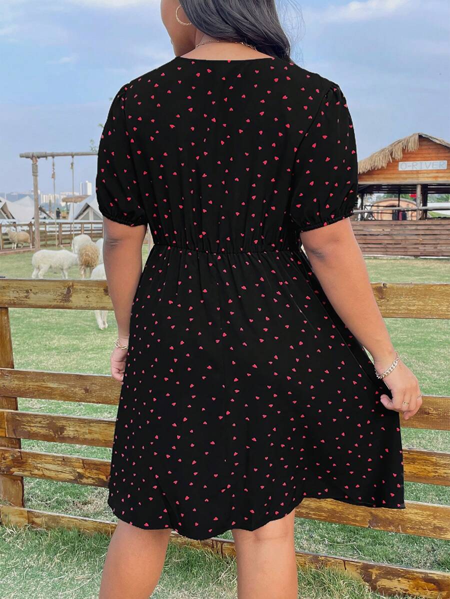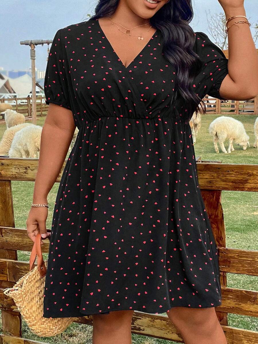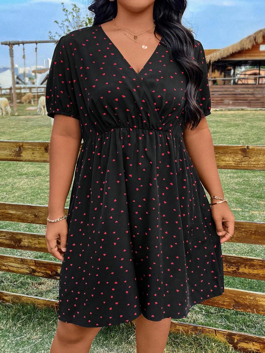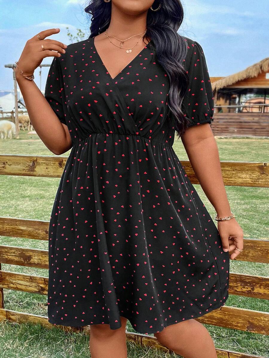 Rochie Scurta Indila Neagra Cu Inimioare Rosii – Marimi Mari