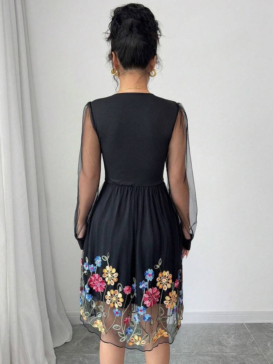 Rochie Scurta Irma Neagra cu Broderie Multicolora