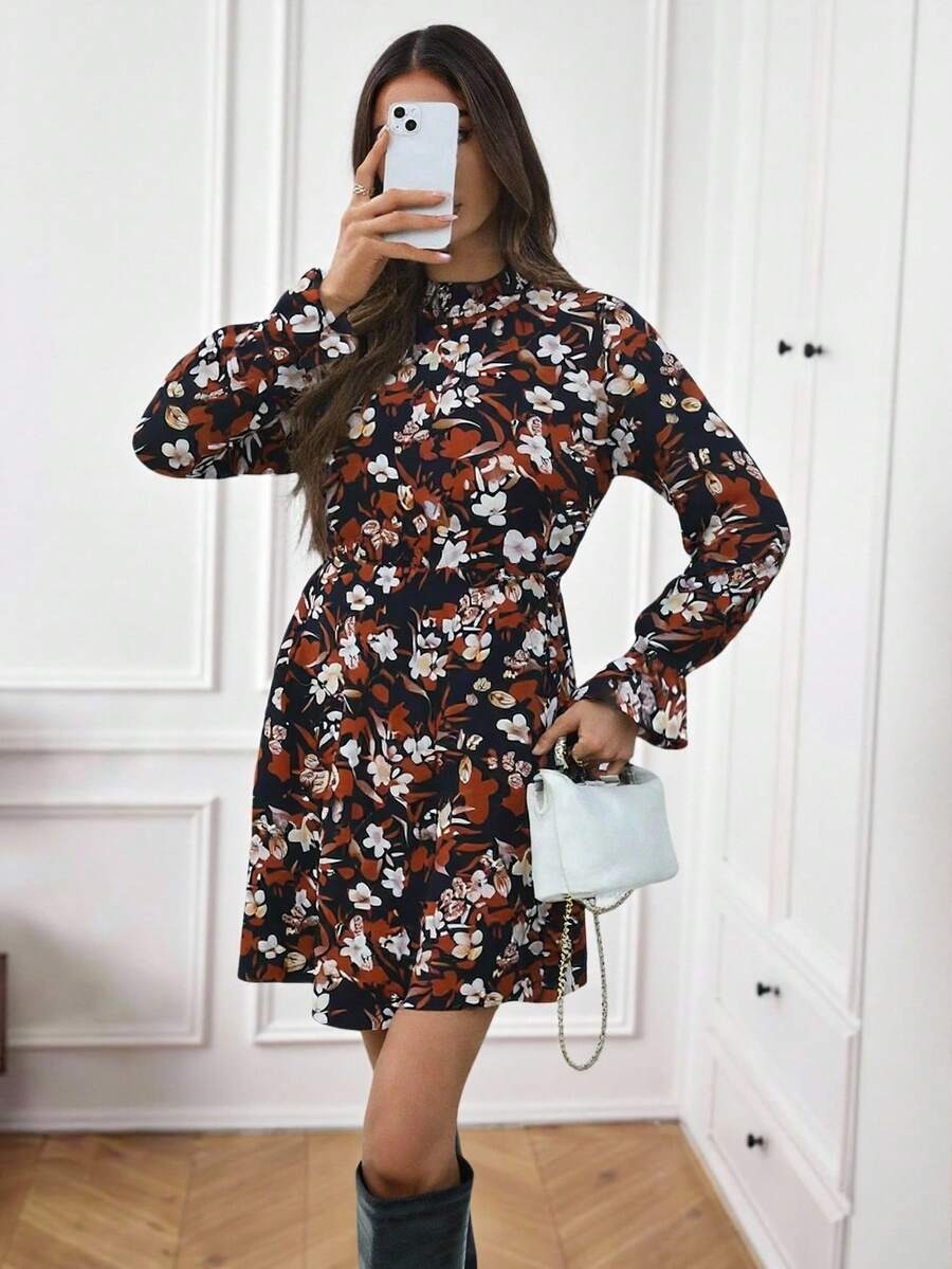 Rochie Scurta Irma Neagra cu Print Floral Alb