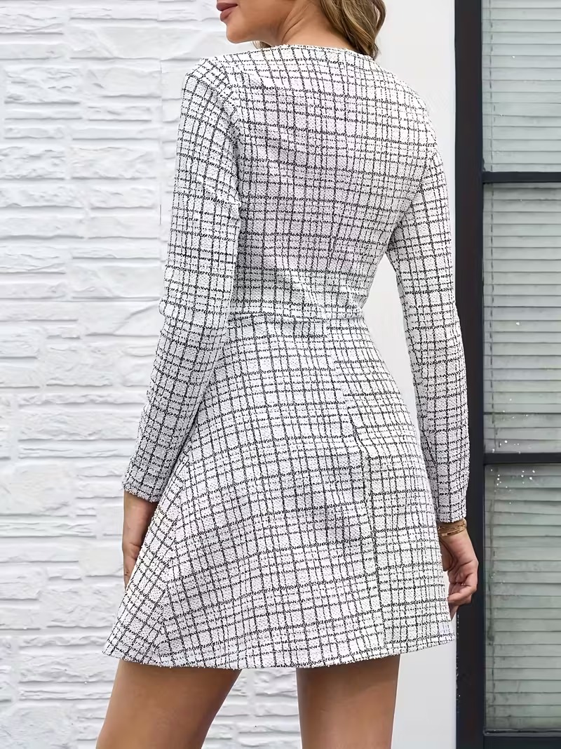 Rochie Scurta Julia Alba cu Print Geometric Negru