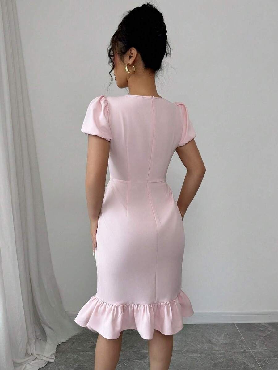 Rochie Scurta Katalina Roz cu Perle
