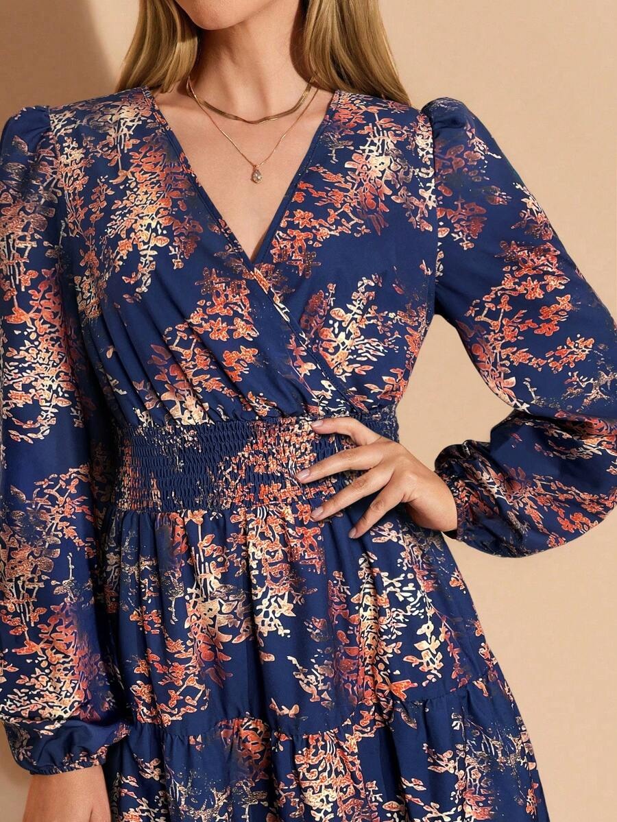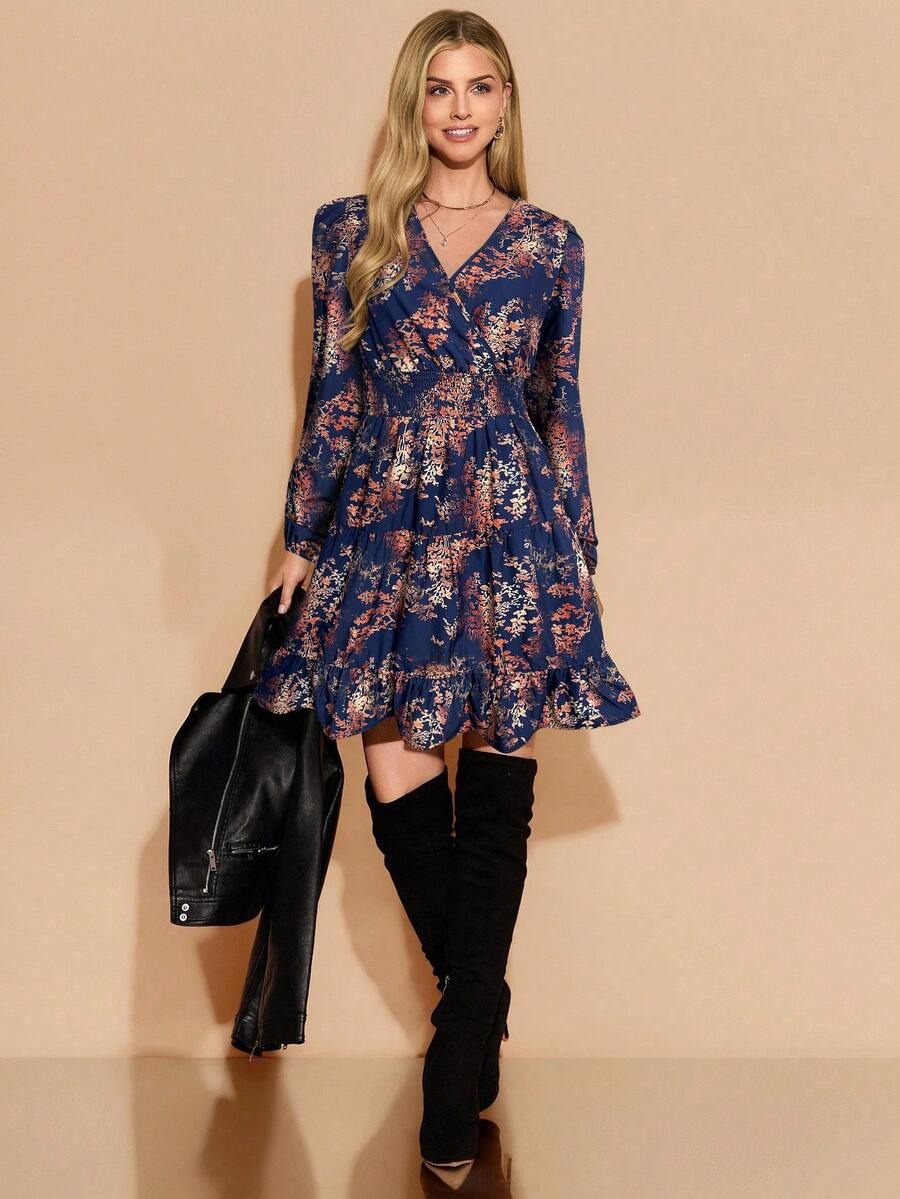 Rochie Scurta Lianna Bleumarin cu Print Portocaliu