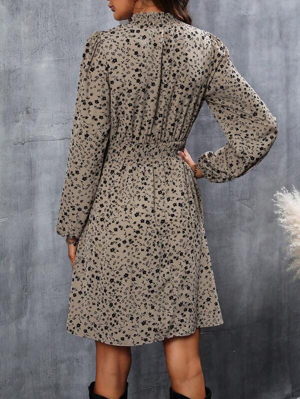 Rochie Scurta Linea Gri cu Print Floral Negru