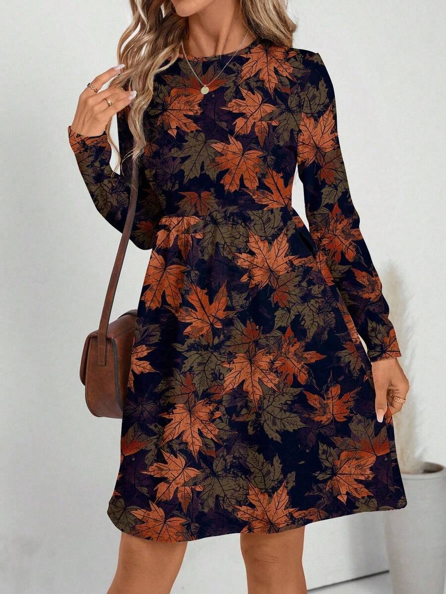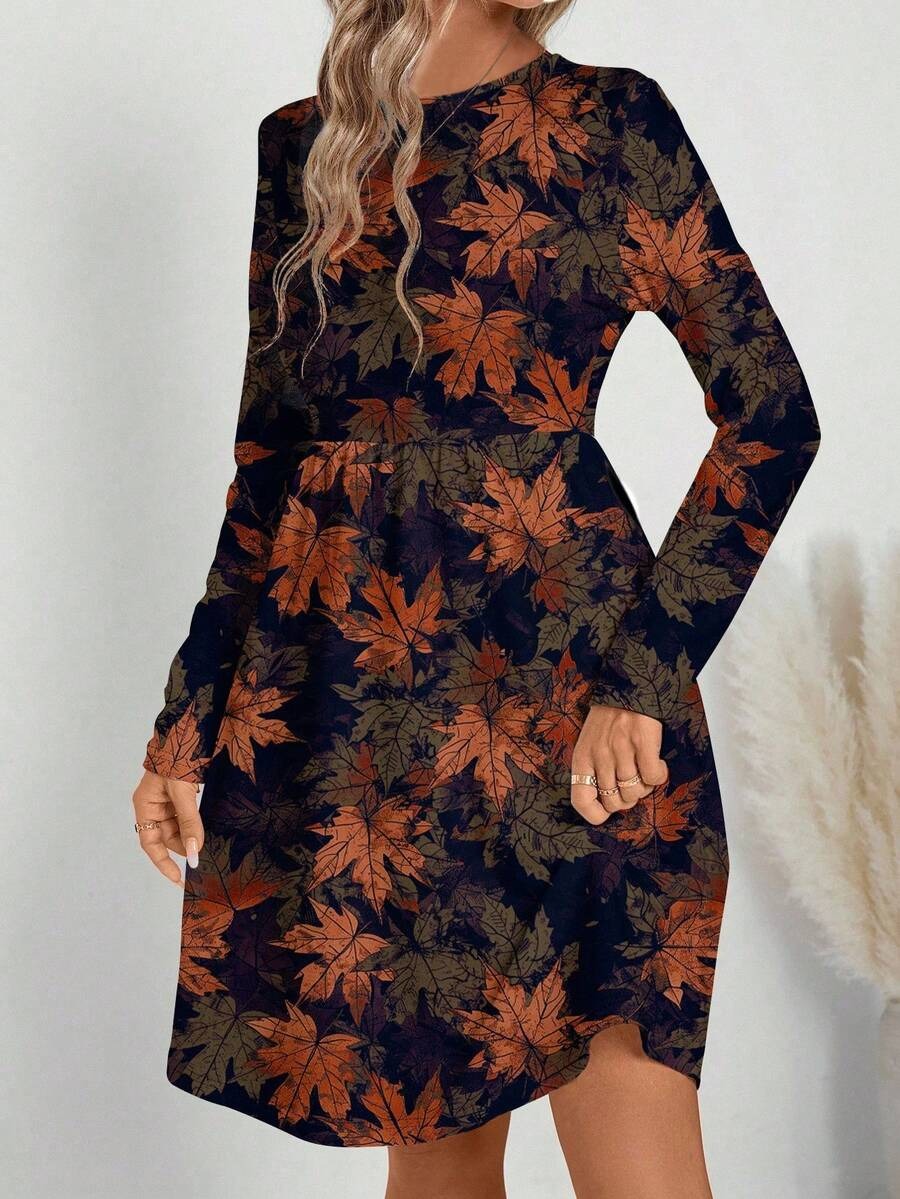 Rochie Scurta Madalina Mov cu Frunze – Marimi Mari