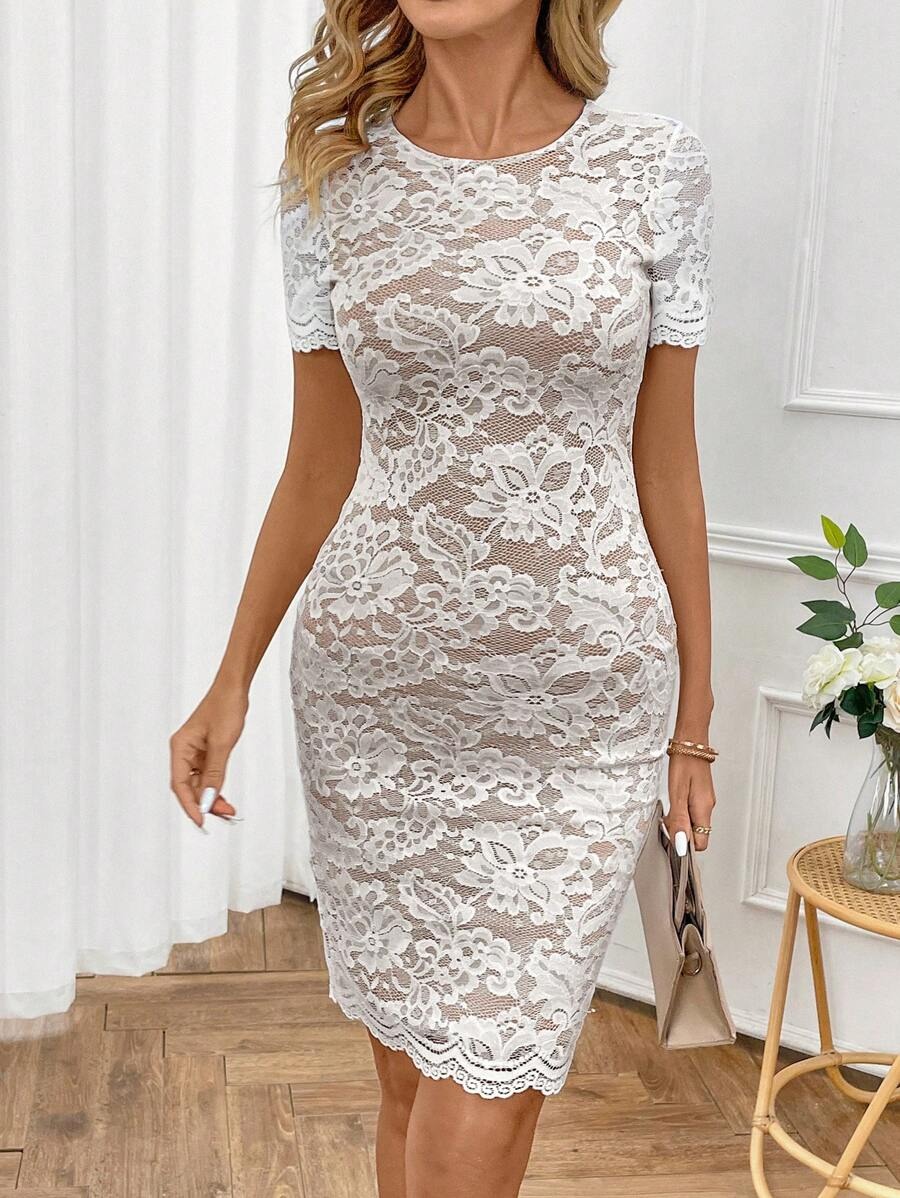 Rochie Scurta Mary Alba cu Captuseala Bej
