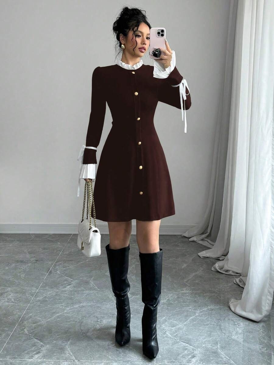 Rochie Scurta Melen Maro cu Mansete Albe