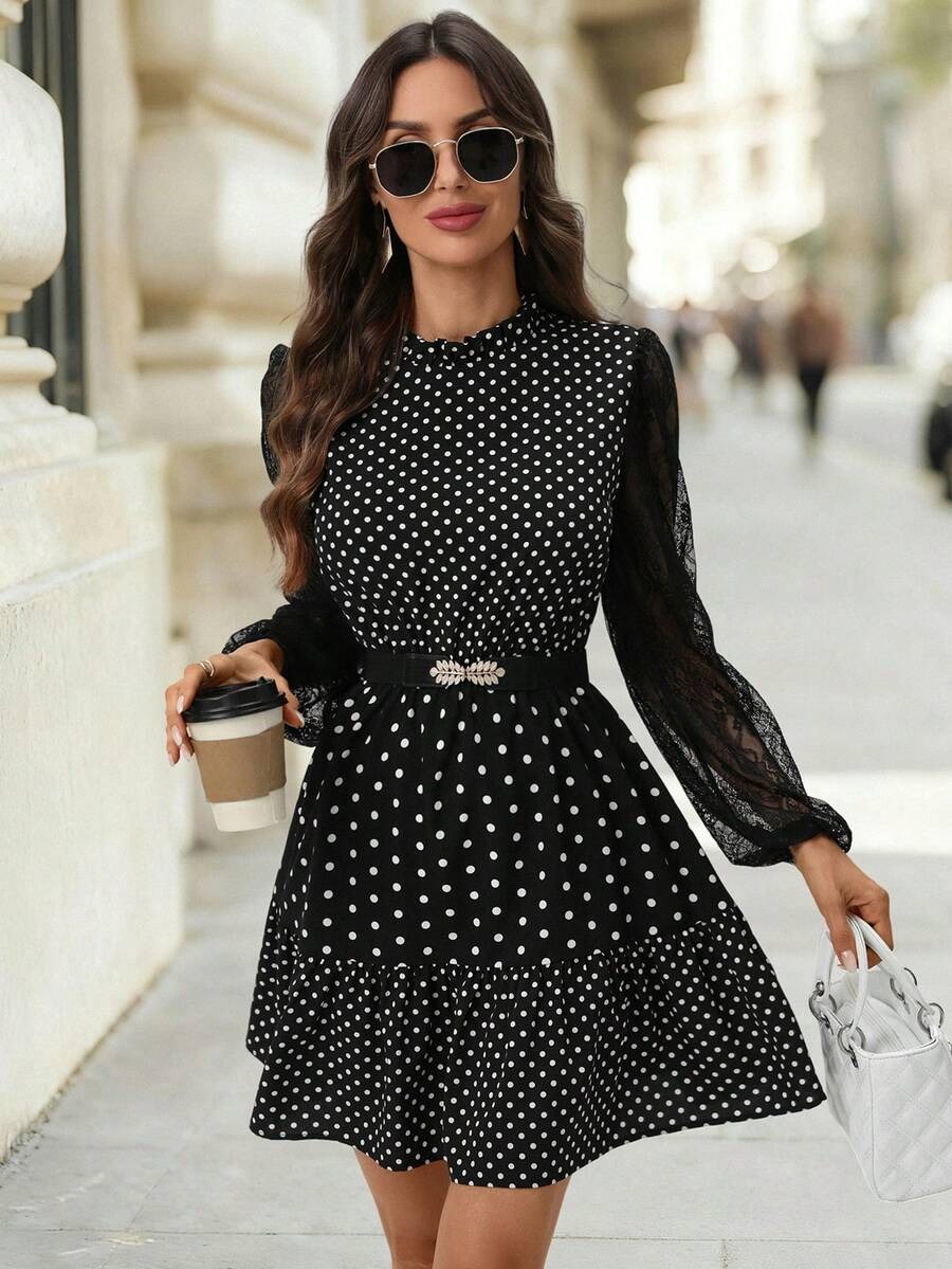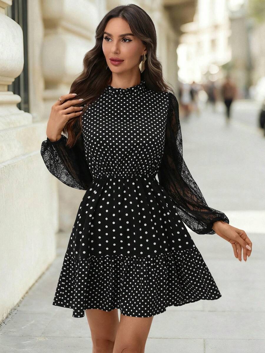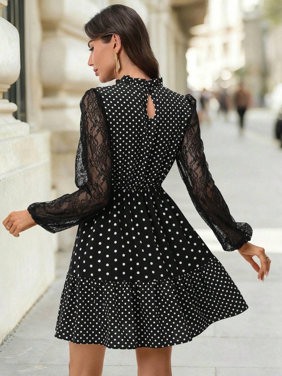 Rochie Scurta Rebeca Neagra cu Buline Albe