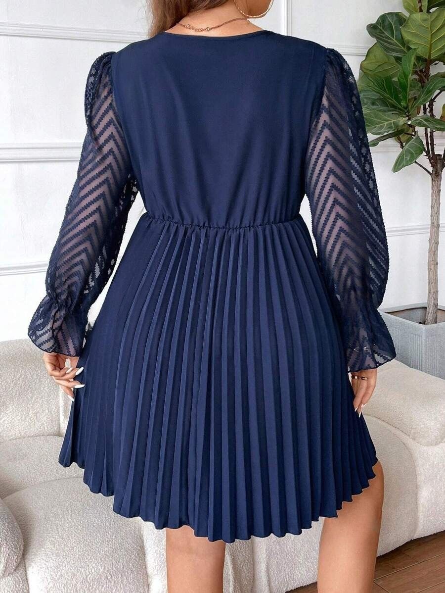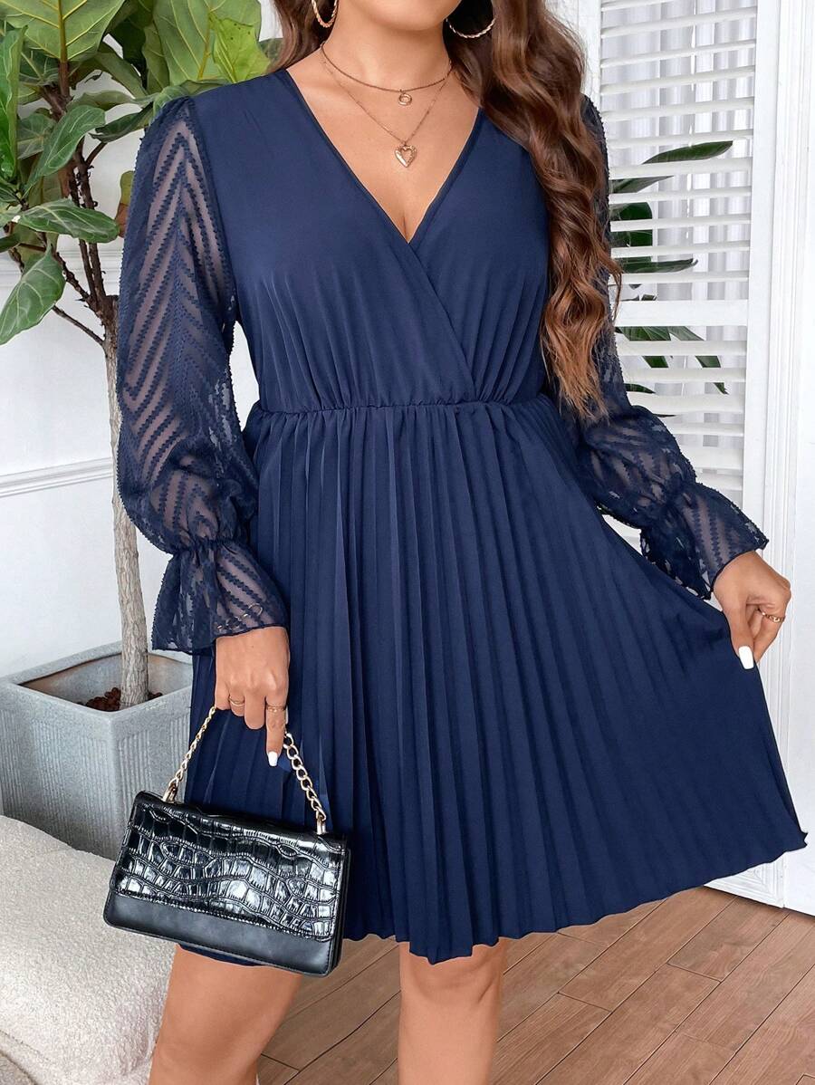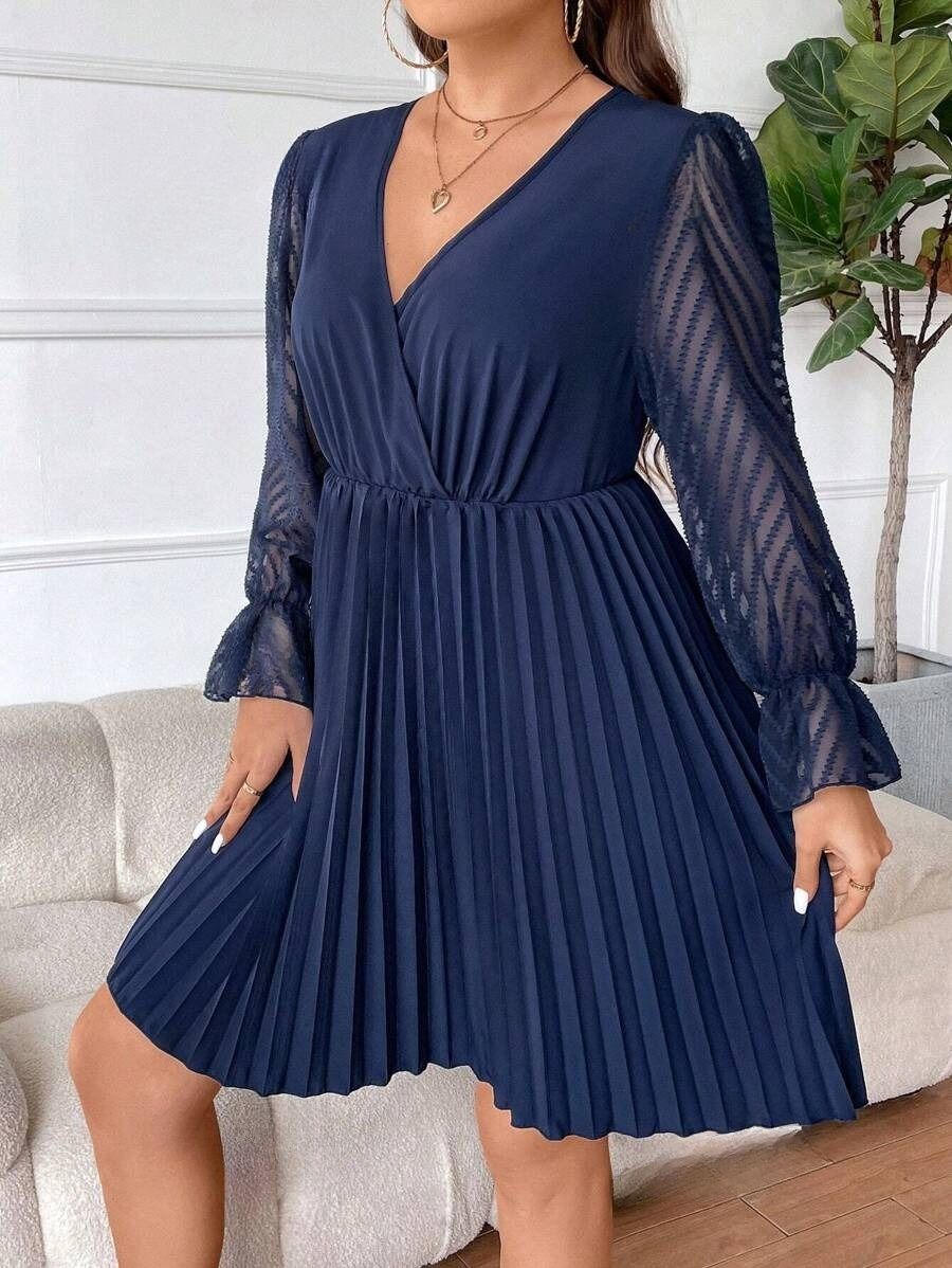 Rochie Scurta Ritha Bleumarin Cu Pliuri – Marimi Mari