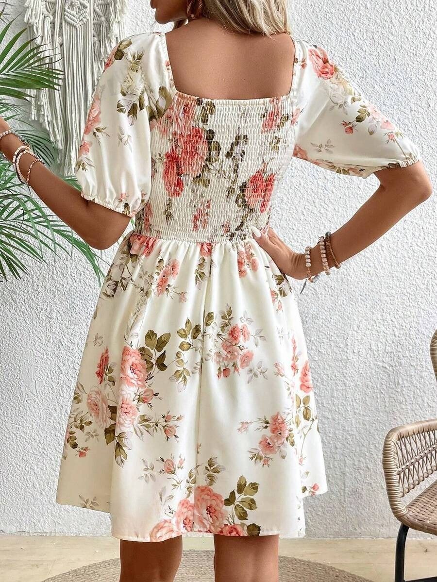 Rochie Scurta Ronna Alba cu Print Floral Roz