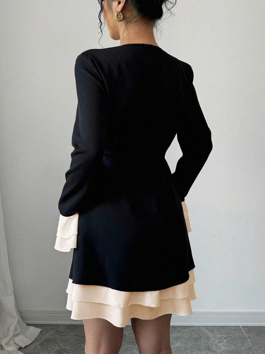 Rochie Scurta Ruana Neagra cu Mansete Crem
