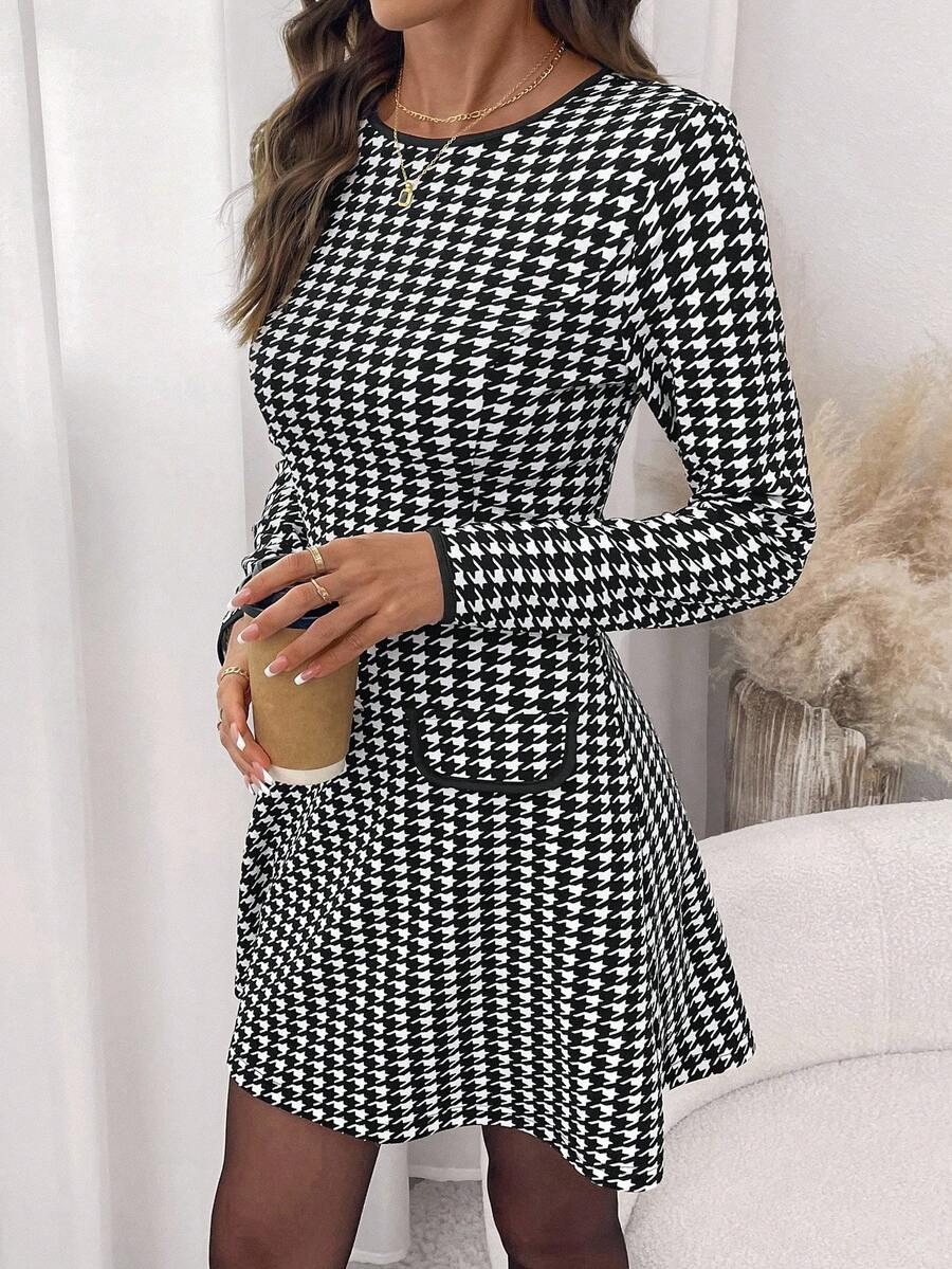 Rochie Scurta Simina Alba cu Print Geometric Negru