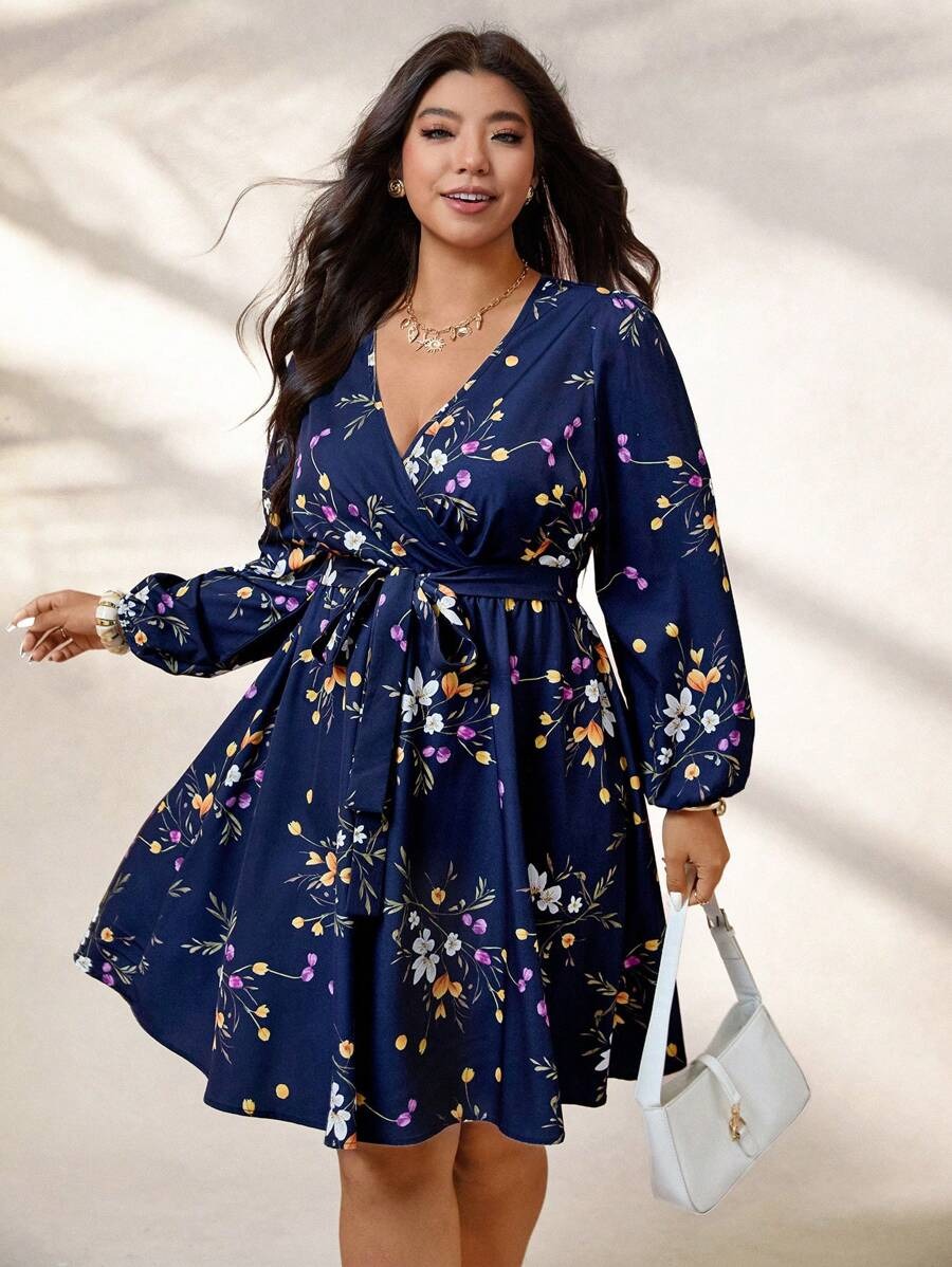 Rochie Scurta Sorana Bleumarin Inflorata – Marimi Mari