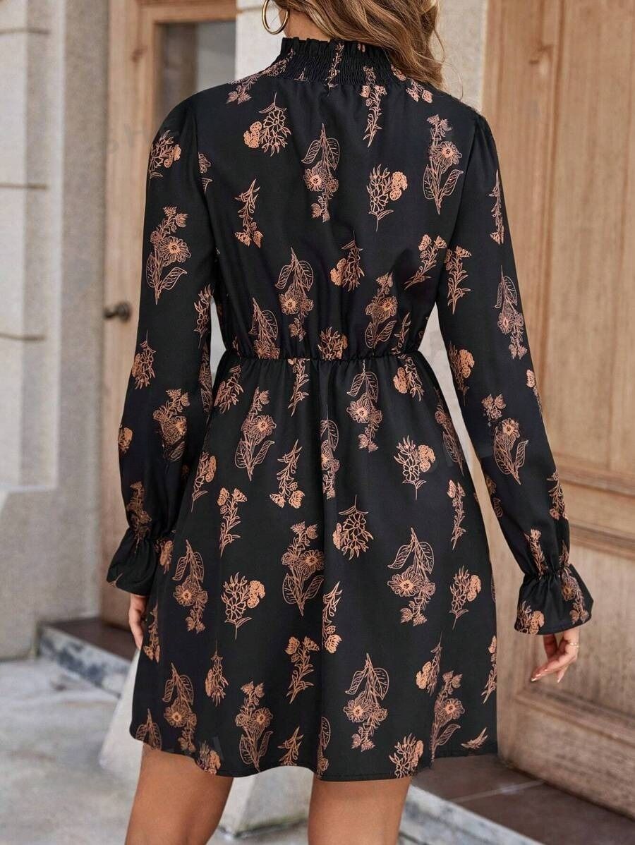 Rochie Scurta Sorana Neagra cu Print Floral Maro