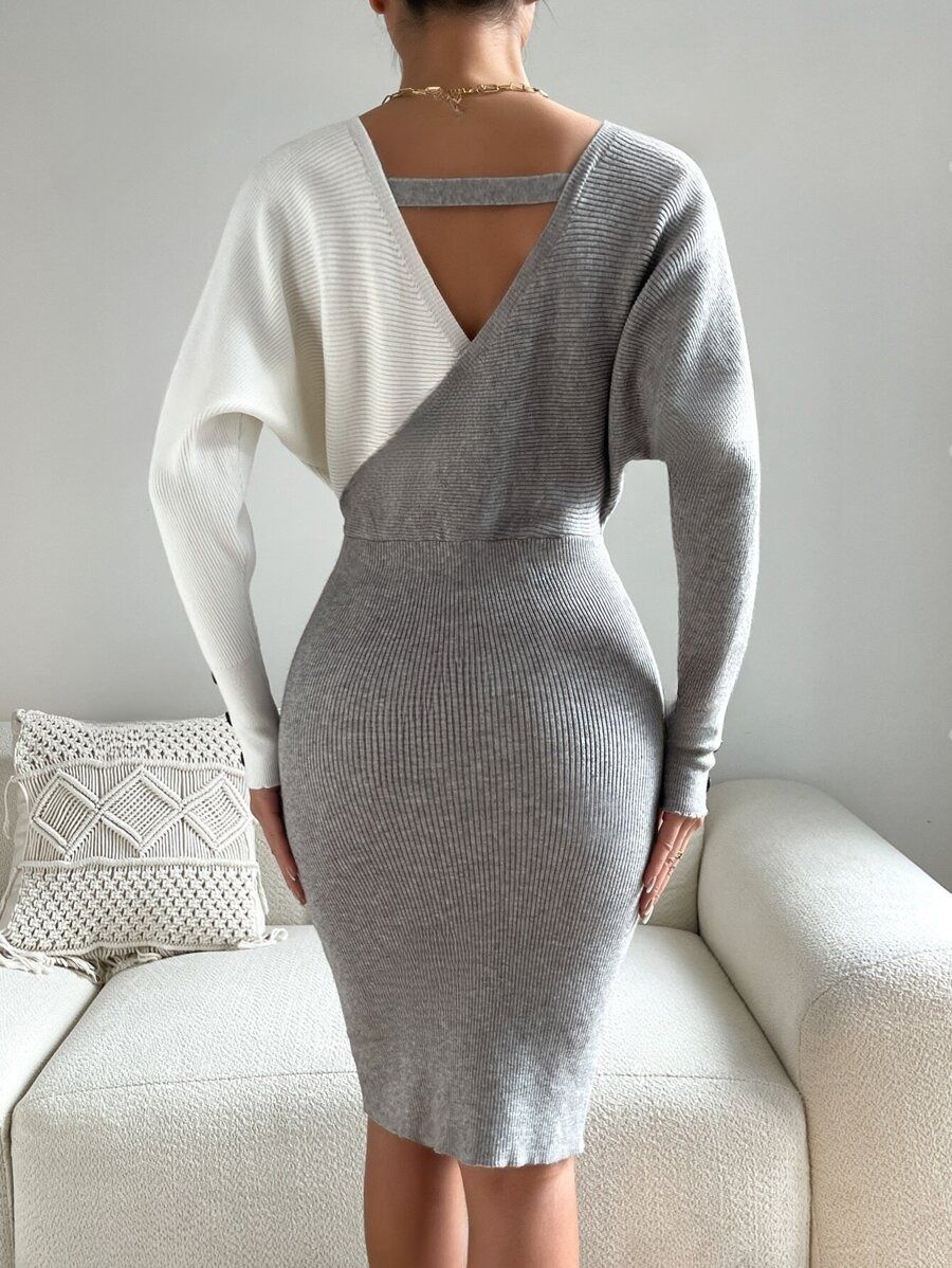 Rochie Scurta Tricotata Adina Gri cu Alb
