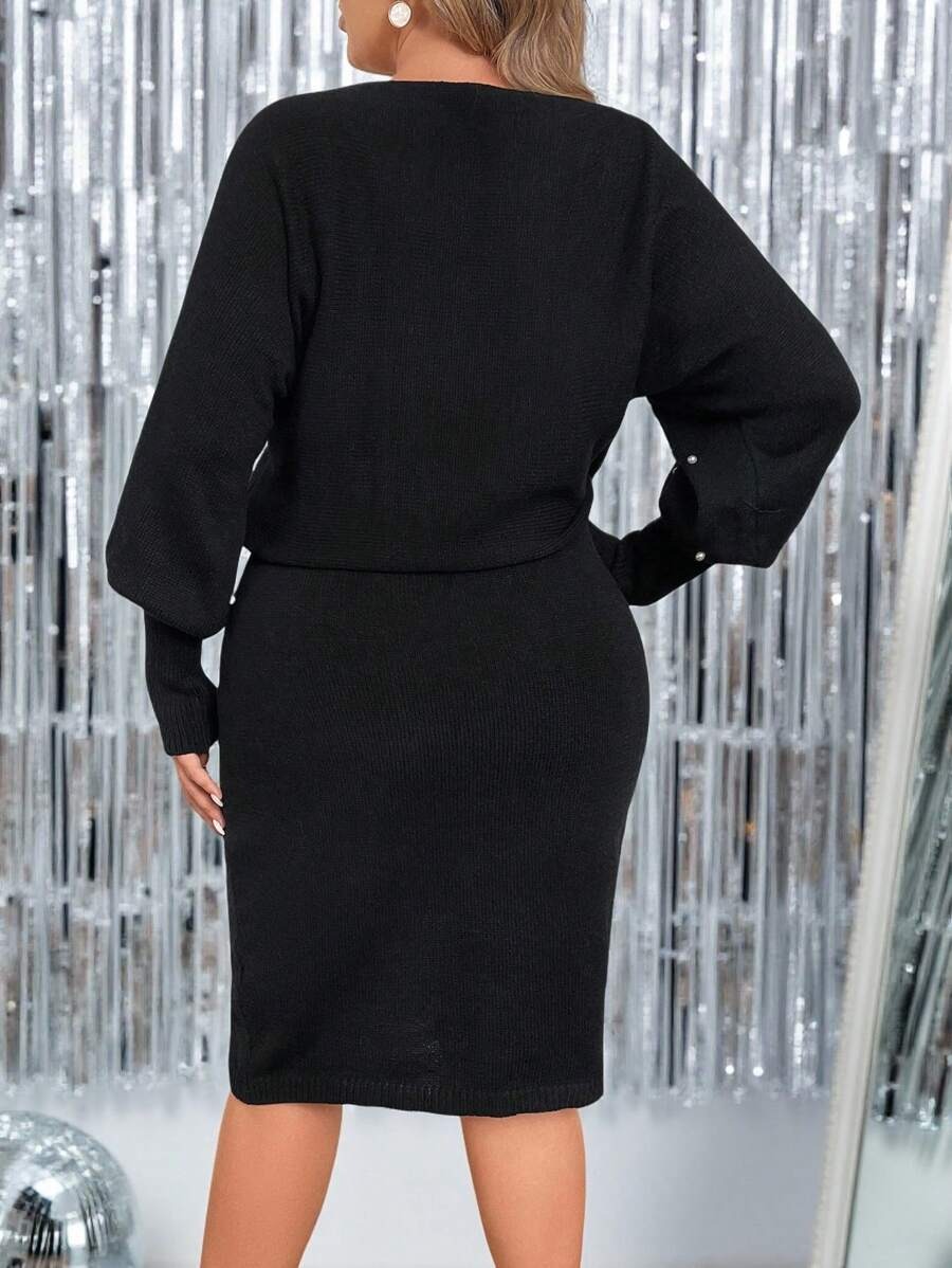 Rochie Scurta Tricotata Dalia Neagra cu Perle – Marimi Mari