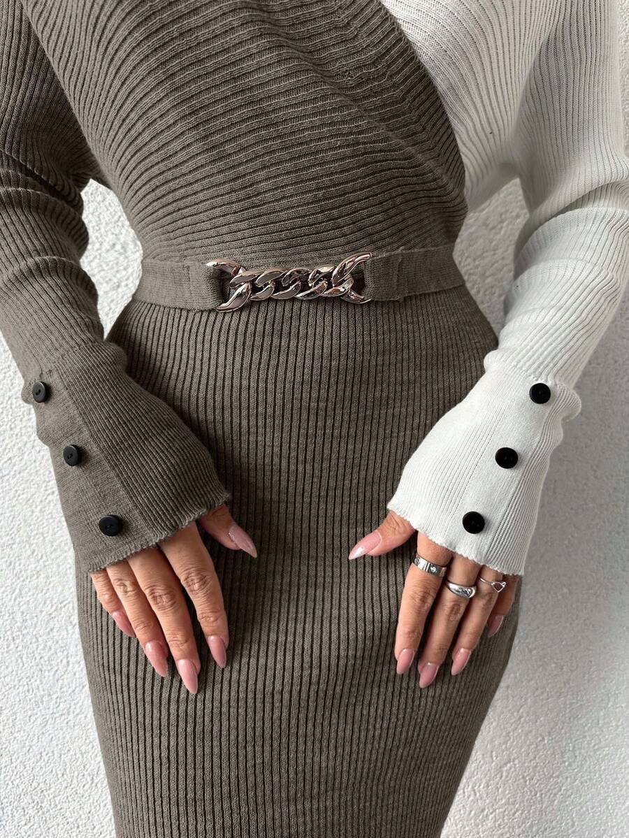 Rochie Scurta Tricotata Elsa Maro cu Alb