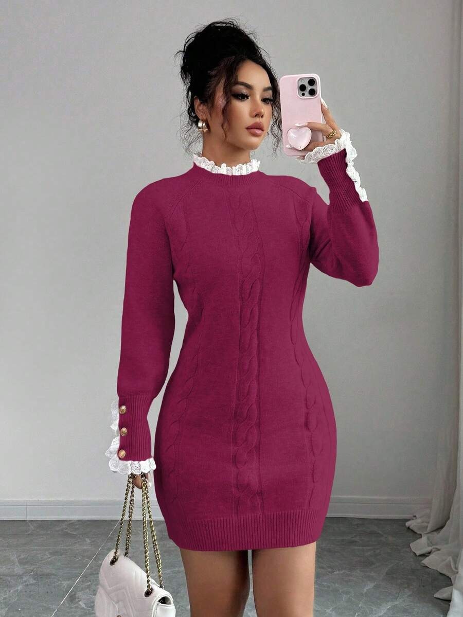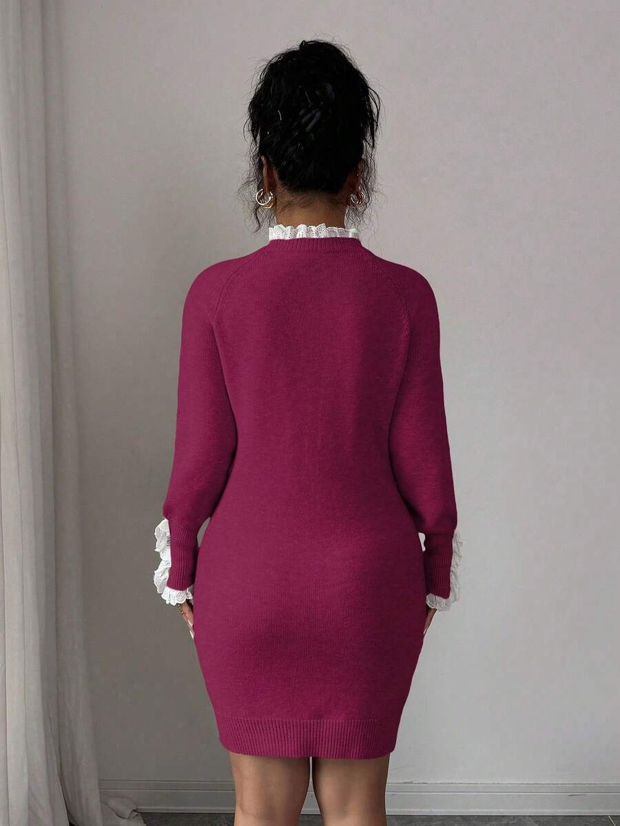Rochie Scurta Tricotata Vivianna Roz Inchis